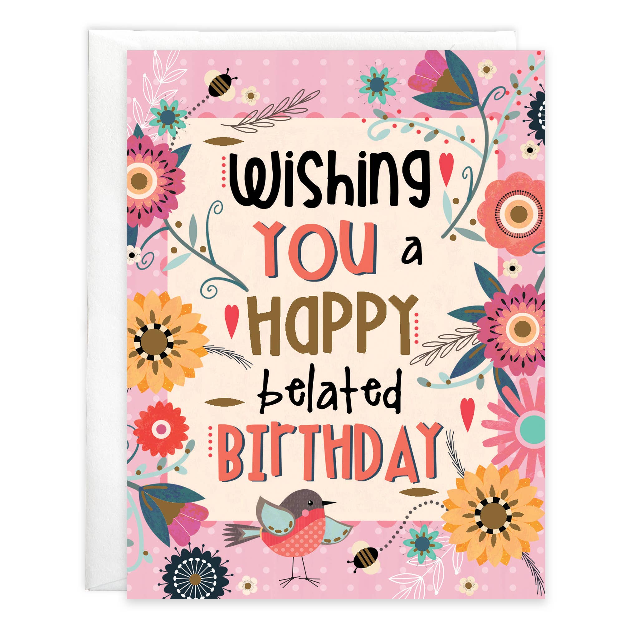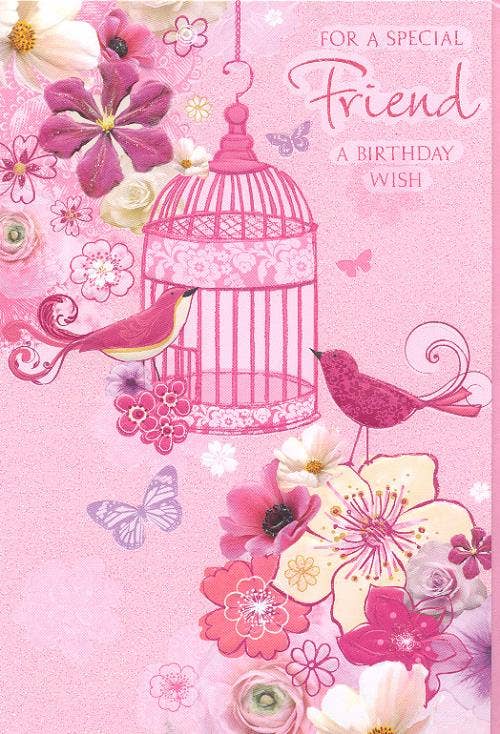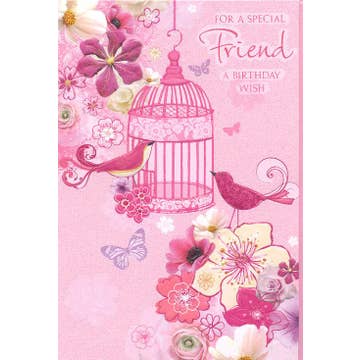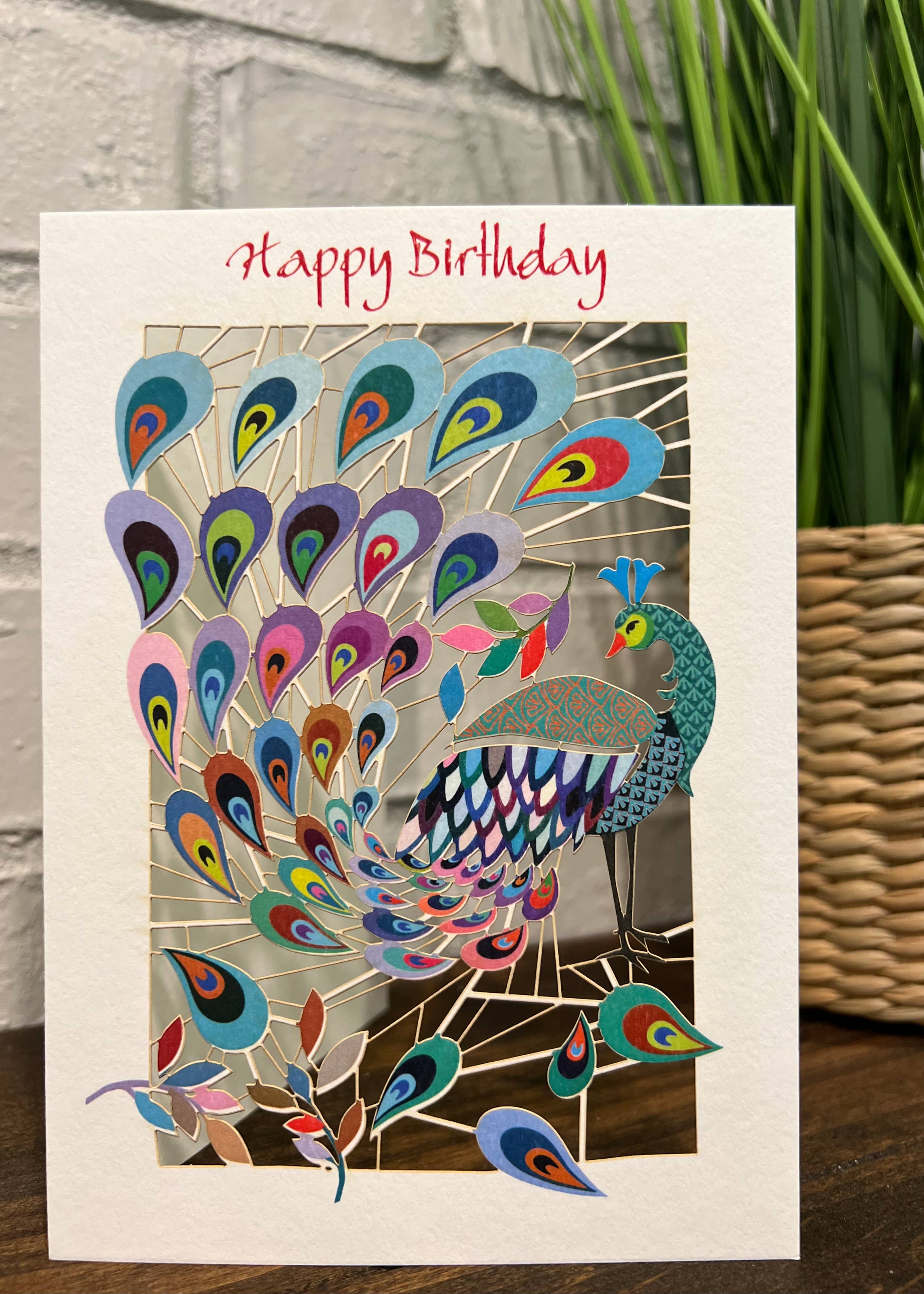 Birthday Card. Printed in the USA on recycled textured paper. Comes with color co-ordinated envelope. Packaged in cello sleeve. Square cards require additional postage.