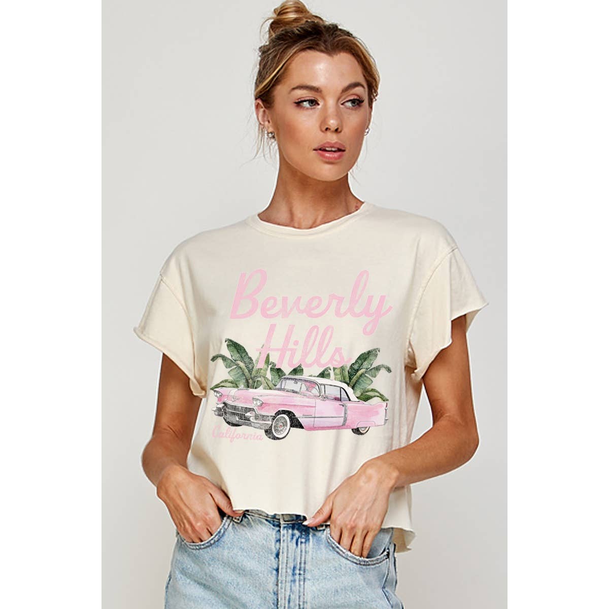 BEACH CLUB VINTAGE GRAPHIC, PREMIUM COTTON, RELAXED FIT, COTTON CROPPED TOP WITH RAW HEM EDGE DETAIL