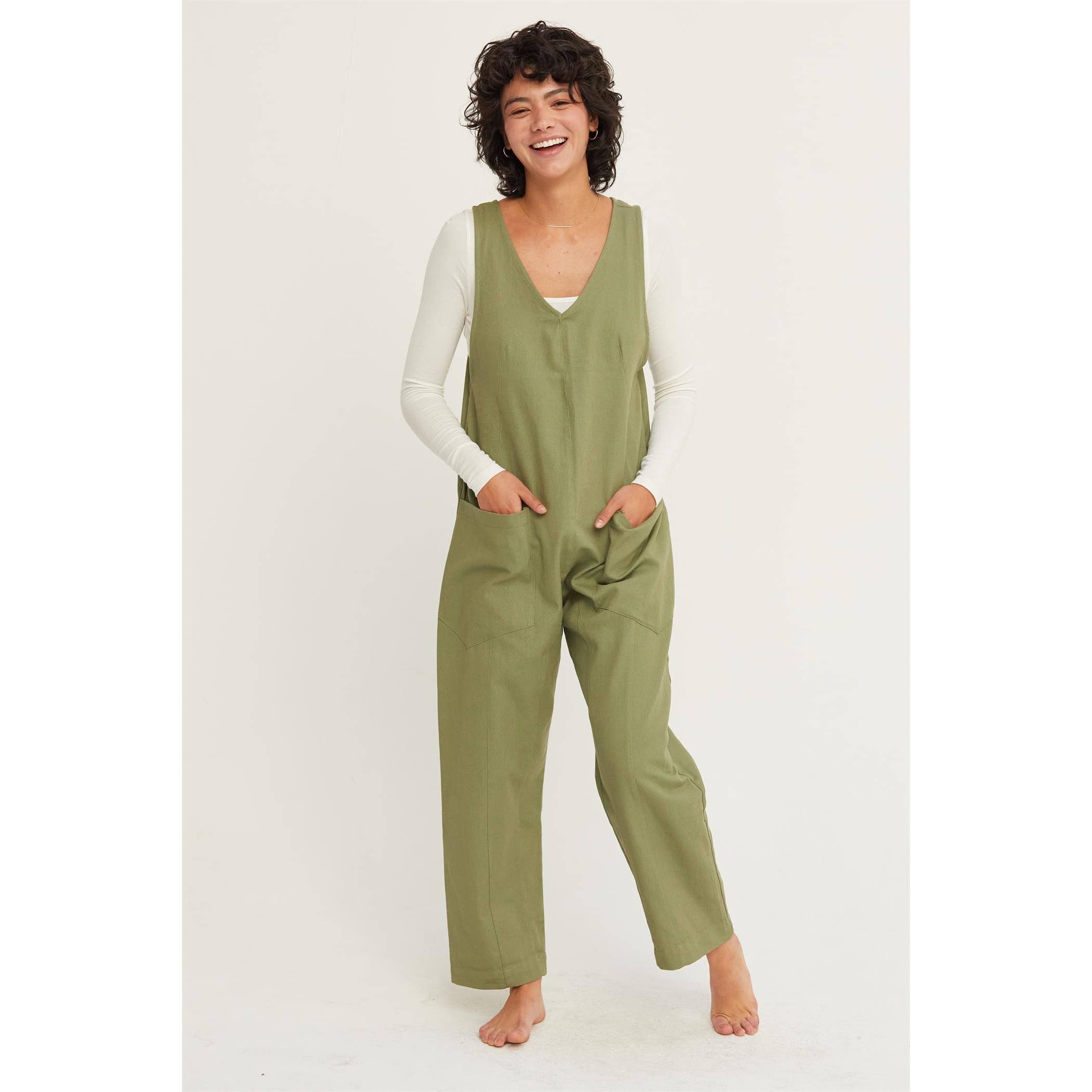 Unisex soft hemp-cotton woven Jumpsuit. Features a full front button entry, baseball v, waist and back pockets, with a relaxed fit. Original design by SEEKER made in the USA. SIZING: Order true to size. Male Model wears size Medium. Female model wears size Small. Women size 0 to 2 = XS Women size 2 to 4 = S Women size 4 to 6 = M Women size 8 to 10 = L Women size 10 to 14 = XL Men size 26 to 28 = XS Men size 28 to 30 = S Men size 30 to 31 = M Men size 32 to 33 = L Men size 34 = XL X-Small jumpsuit in inches flat front Waist 17.5” Inseam 23.5” Outseam 33” Pit to pit 19” Shoulder 15” Back 22.5” Total length 56” Sleeve inseam 17” Small jumpsuit in inches flat front Waist 18.