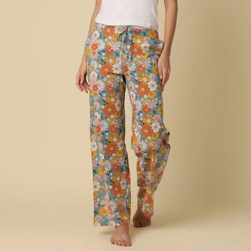 Luxury cotton pyjamas bottoms. With beautiful detail, pockets, piping + both an elasticated + drawstring tie. Please note, top not included.