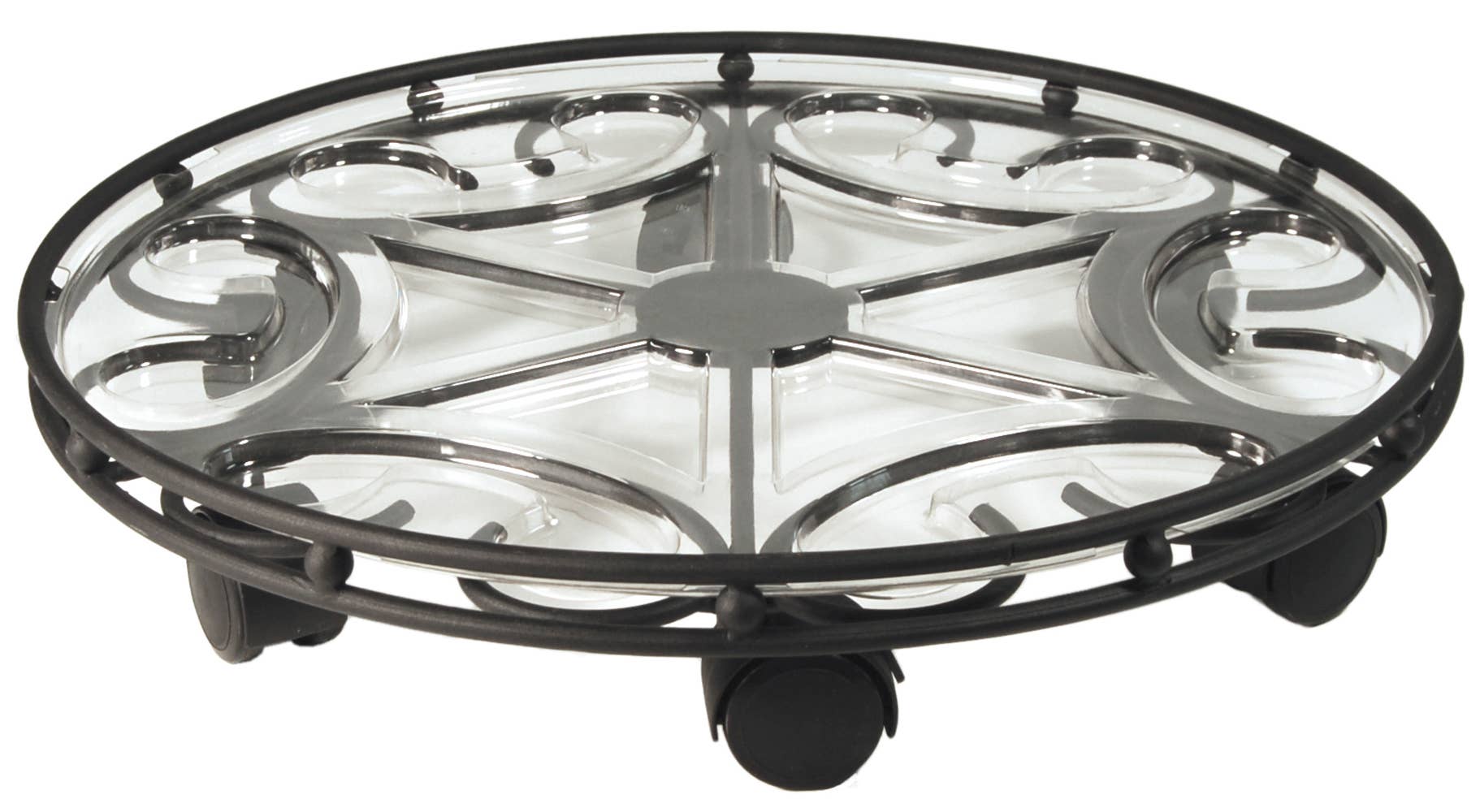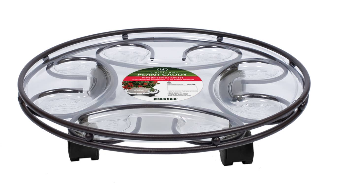 The All Weather Wicker Caddy has a sturdy steel frame woven with weatherproof wicker-like material that is built to last. Caddy includes heavy duty casters and a plastic liner to protect your surfaces against spills and overwatering. 2 Sizes available.