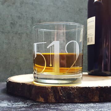 Lowball/Rocks/Whiskey/Double Old Fashioned glass (it goes by a lot of names), with engravings. Etched with a traditional technique that keeps designs crisp and sharp with a uniquely smooth texture. Dishwasher-Safe Food-safe Sturdy, restaurant grade glassware Handmade in small batches Permanent Design (Not printed or laser etched) APPROXIMATE SIZING: Capacity: 10.25 oz Height: 3.5” Width: 3” Weight: 14oz Functional and fun original designs are individually etched onto each glass in my studio in Austin, TX. All items are hand-decorated, so patterns may vary from glass to glass.