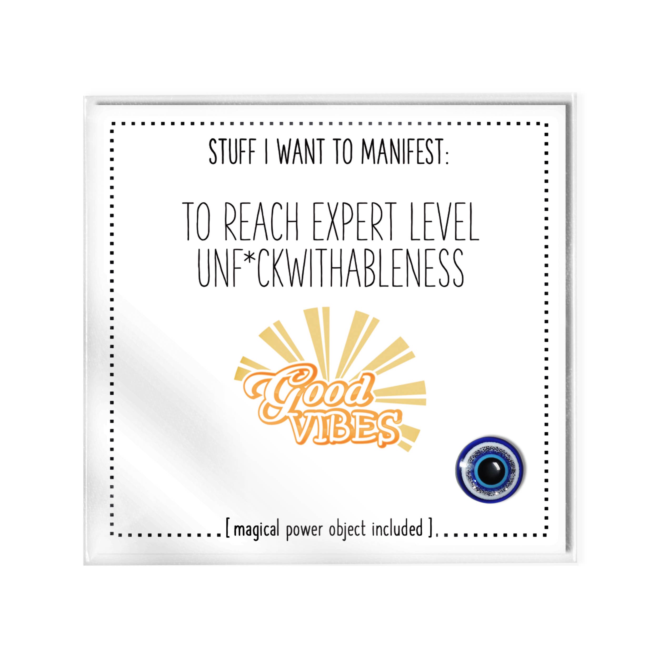 Stuff I Want To Manifest : World Peace n'Shit Make this the year of your dreams by choosing everything you want to manifest and make come true! Let's DO THIS! Surround yourself with signs that keep you on track! Each 3 x 3 package comes with a manifesting card and instructions on how to manifest, plus a super attractor Magical Power Object to carry with you or pin to your vision board to make it come true. You can keep it all together in the bag or carry the Magical Power Object in your purse or pocket separately! Slip it into greeting cards, gifts, pockets or purses. Attach it to your vision board, mirror or altar. Magical Power Object may vary*