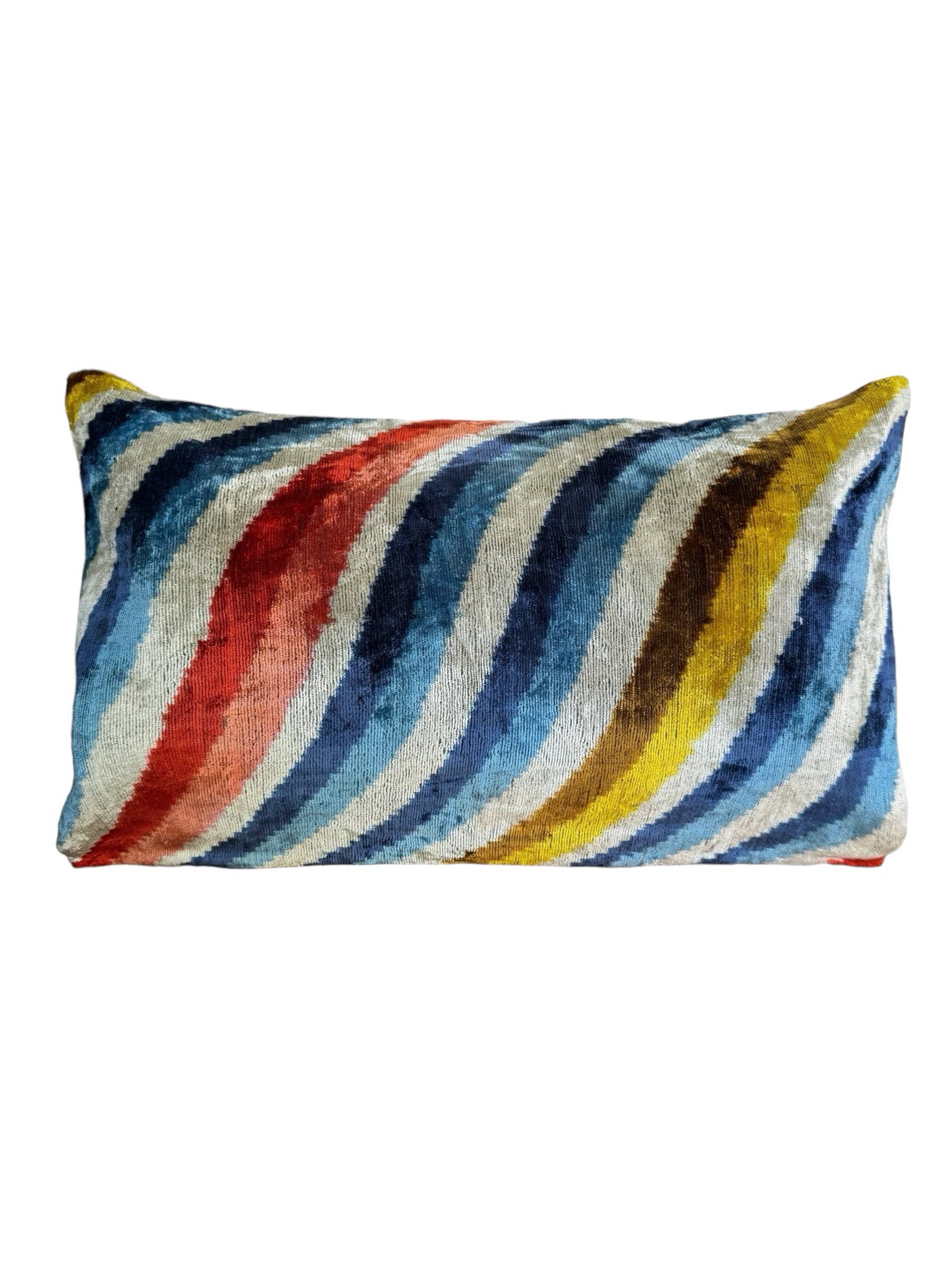 Description: Hand Marbled cushions, inspired by patterns on water, sky and mountains. 100% Cotton Cushion Cover. Handmade in Small Batches by Master Artisans. Closure - Concealed YKK Zipper Size : 12" x 16" Material : 100% Cotton Care Instruction : Machine wash cold gentle cycle with like colors. Lay flat to dry or tumble dry low. Iron on reverse side suggested.