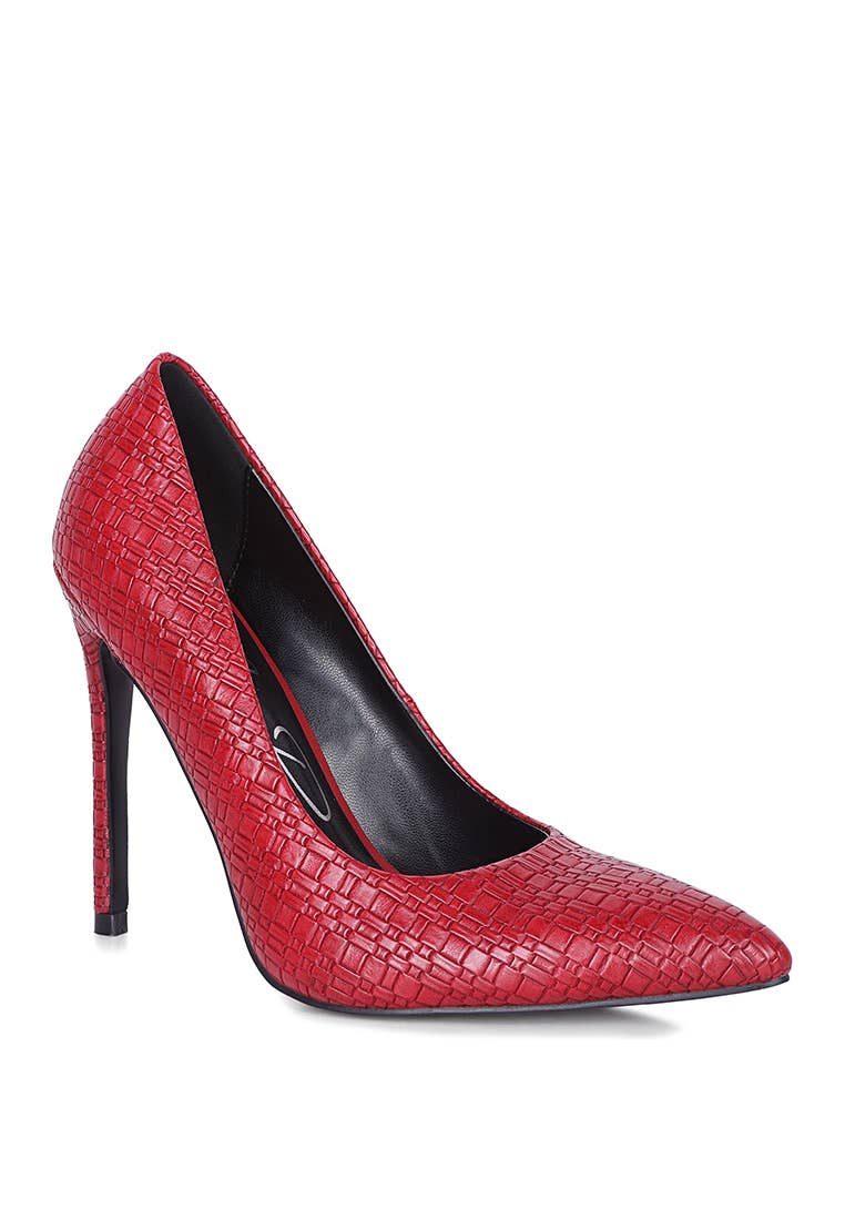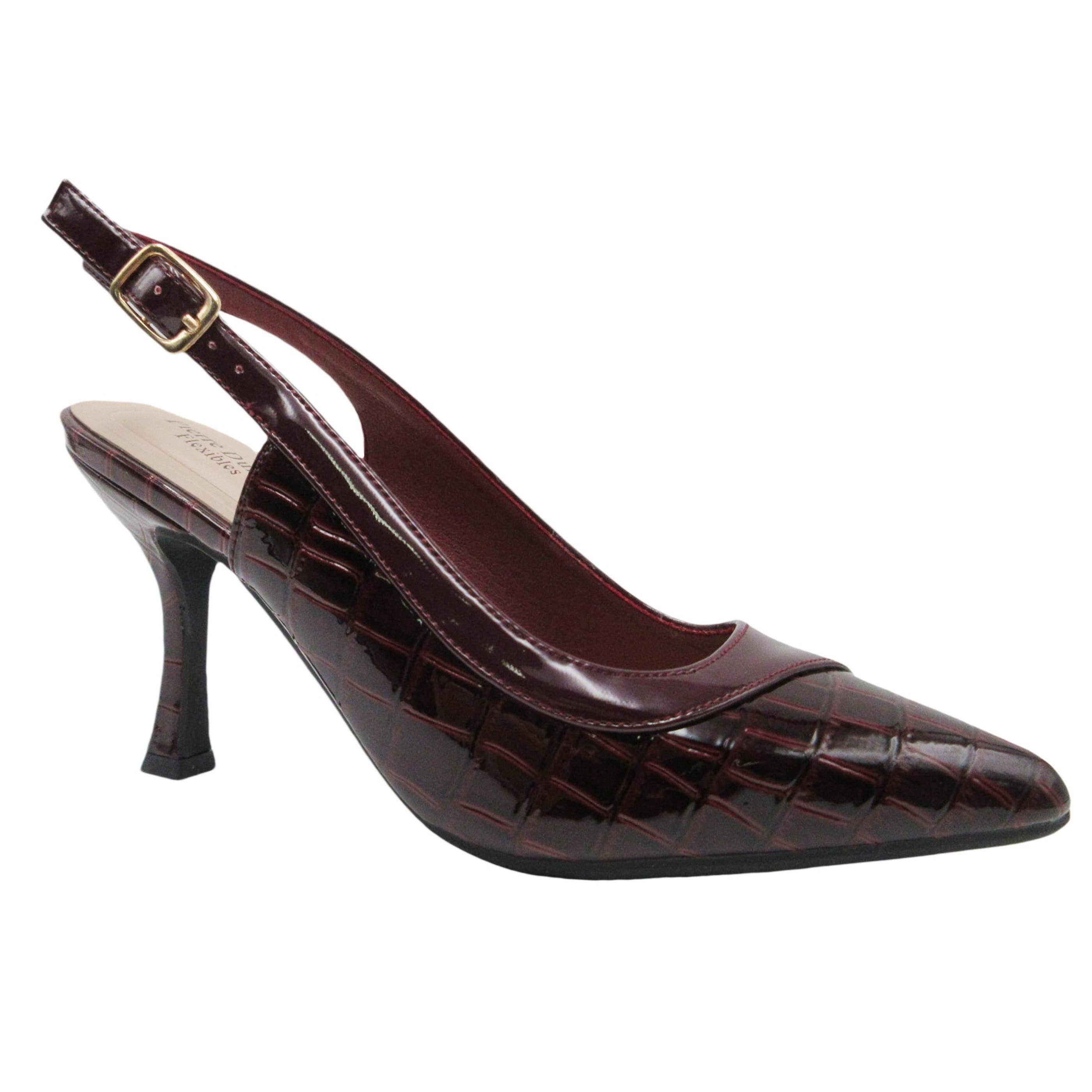 The Georgina pointed toe sling back shoe features a stiletto heel, and is decorated with a bow on the upper. • Upper: 100% Faux Leather • Outsole: 100% Rubber • Lining: 100% Faux Leather • Heel Height: 3.74"