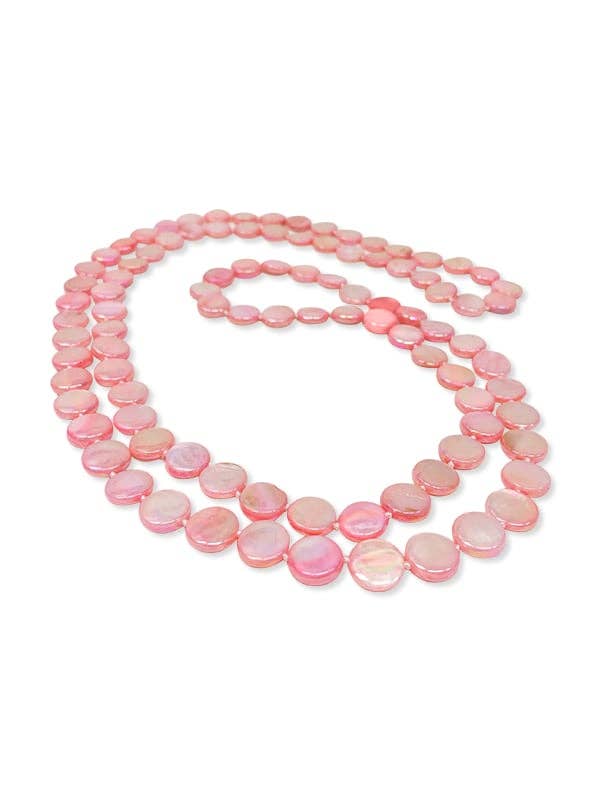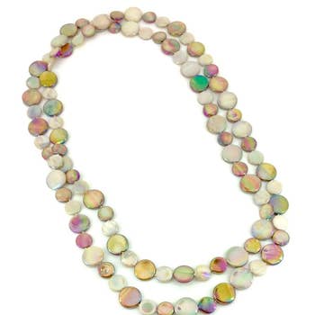 The refreshingly zesty shades of the citrus Mother-of-Pearl featured here cannot fail to impress. This unique piece speaks of travel, of far-flung, exotic climbs, and a life less ordinary. It is versatile, and can be worn as a single or double strand necklace. This is a gorgeous statement piece for trendy afternoons out on the town, events where you want to be noticed, and for adding a touch of exotic sparkle to casual wear. If you’re feeling adventurous, add this beauty to your collection and watch it pay off. * Colors: Lemon, Lime, & Orange * Size: 11mm * Number of Pearls: Approximately 100 * Luster: Highest * Surface: Excellent * Matching: Perfect * Species: Mother-of-Pearl * Design: Contemporary, Trendy, Versatile * Occasion: Weekend, Casual, Evening * Rarity: Unique * Clasp: Claspless * Stringing: Double-Knotted, Double Strand Fine Silk * Necklace Length: 47 Inches