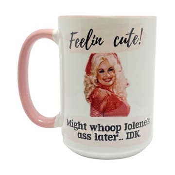 Dolly Parton - Caffeine, Caffeine, Caffeine, Cafeeeeeeeine Coffee Mug - To The Tune of Jolene Available in White and Pink. 11oz./15oz. Ceramic Mug. Dishwasher Safe. Microwave Safe.