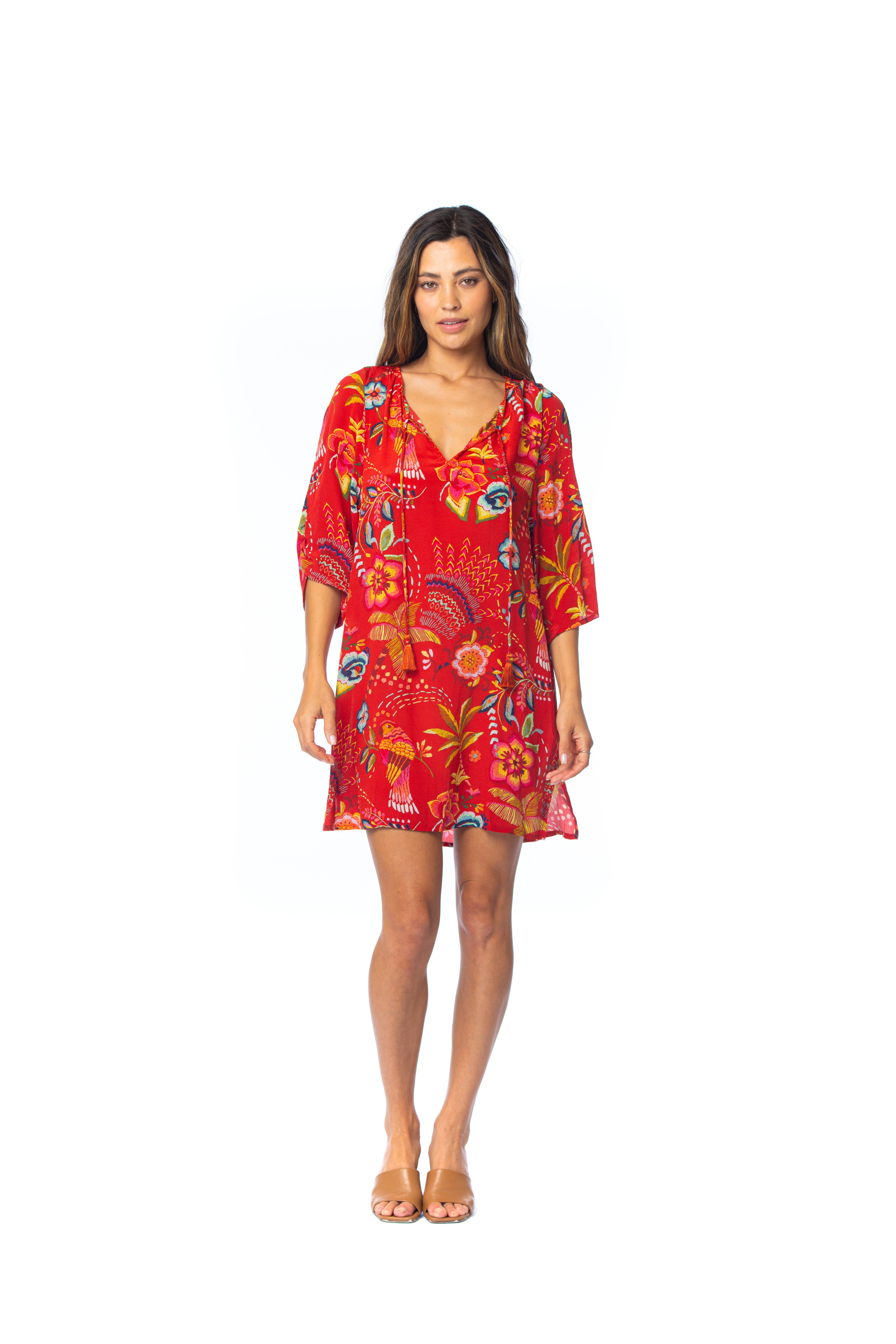 TRAPEZE CUT DRESS WITH HIBISCUS FLOWERS - 95% VISCOSE 5% SPANDEX