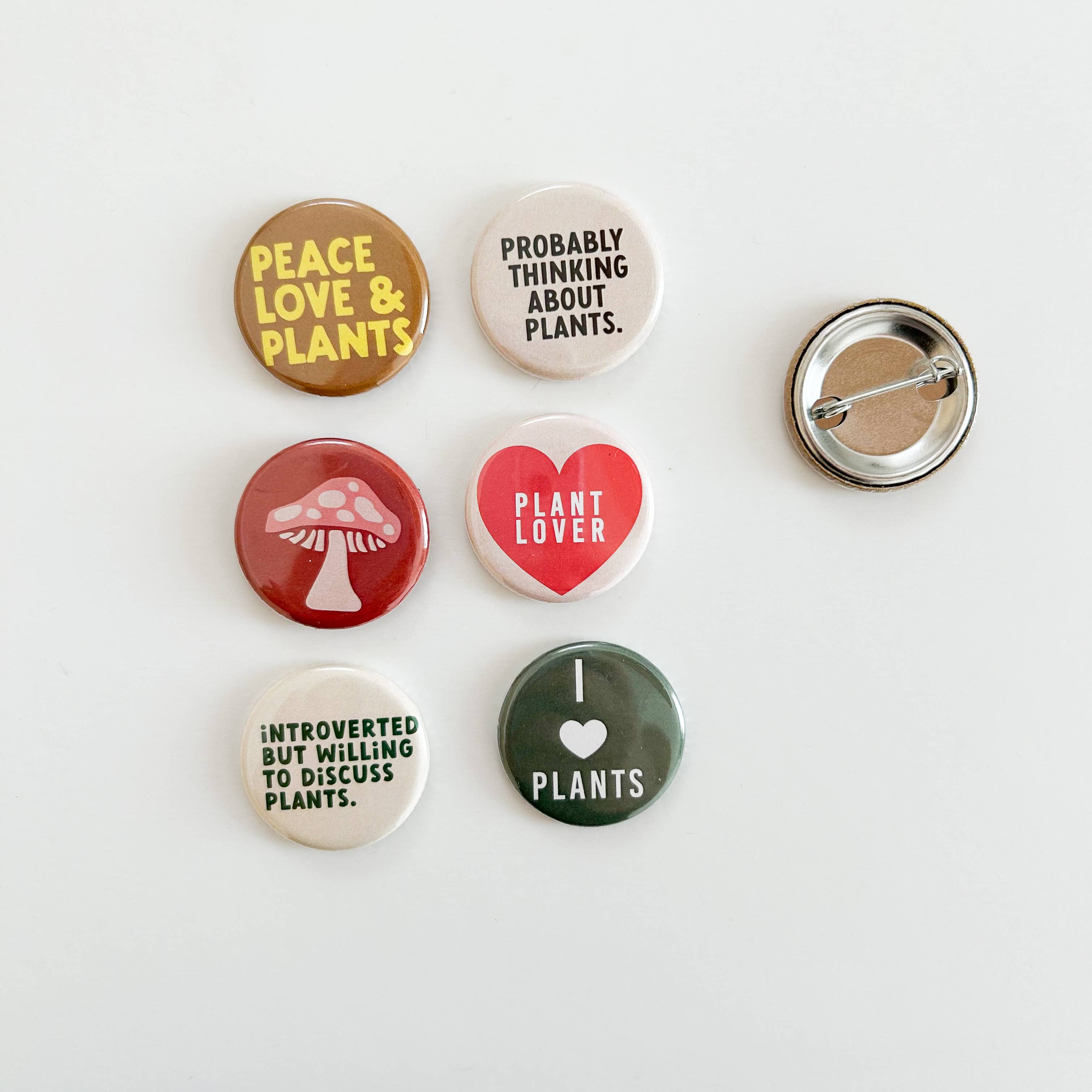 This mix is a perfect set for all ages. Button is 1 1/4 in size with metal backing Package free . A great item to set on your check out counter . Buttons are typically sold for $2-4 each . Set comes with 6 buttons per set.