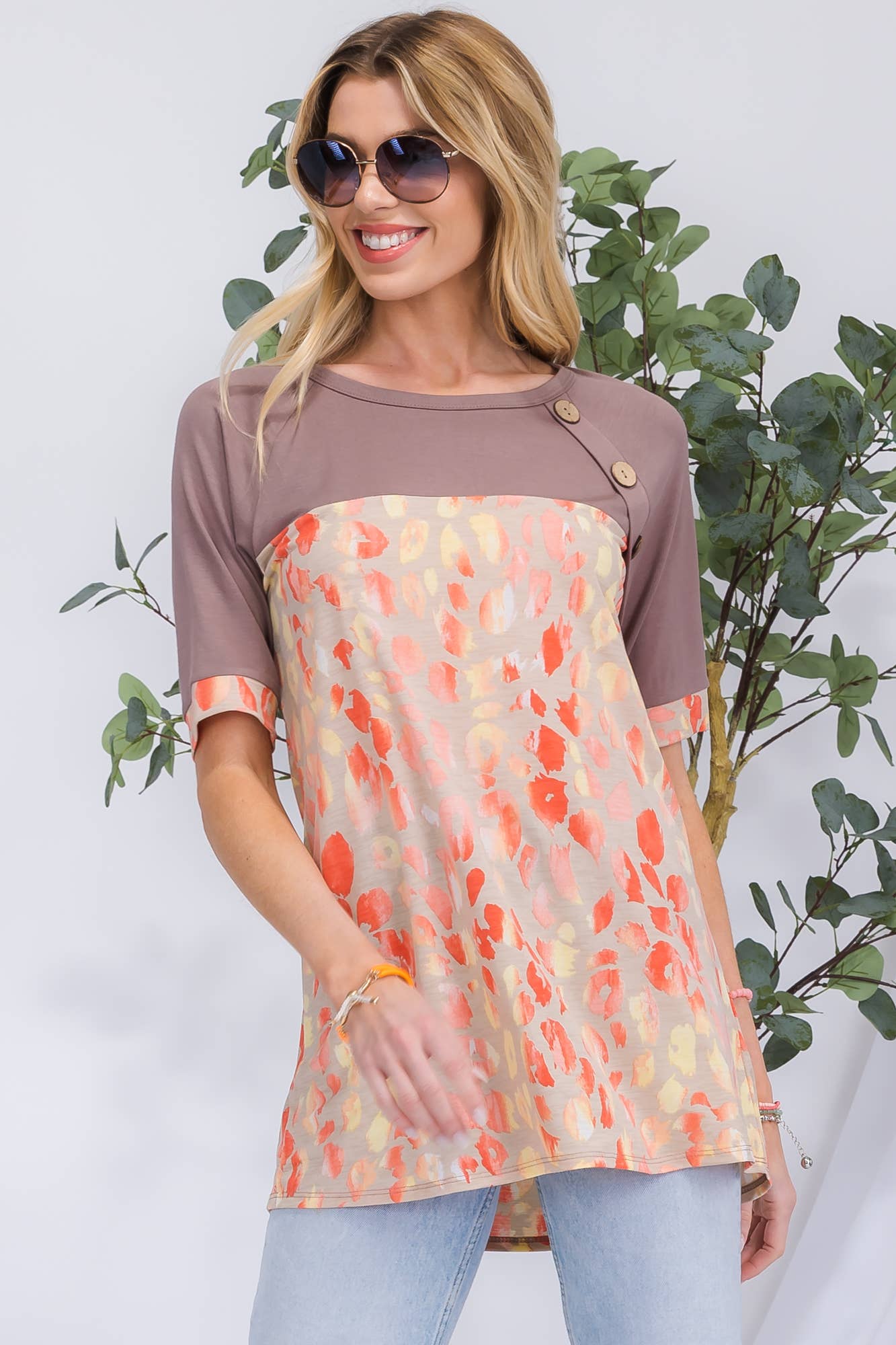 Whimsical Mushroom V-Neck Flowy Top