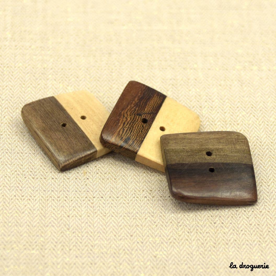 Irregular round button with two holes. It has a natural material look, but it's made of polyester! This makes washing easier! Its Earth tones and small polka dot pattern give it an ethnic style that we love. Polyester Button Size: 22 mm Available in colors: Brown, Caramel, Redhead, Olive Green, and Teal. Made in EU