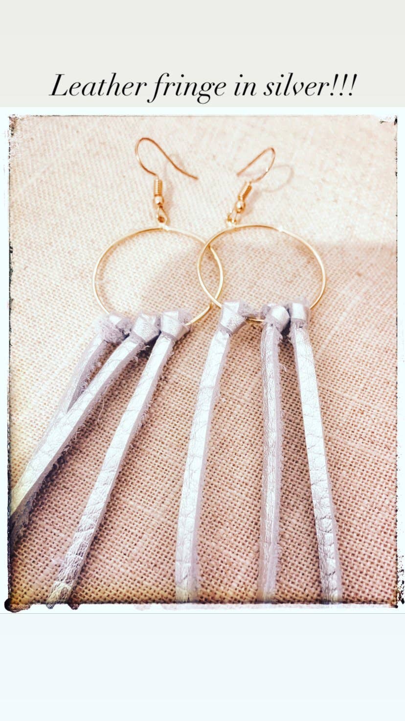 These bold hoop earrings are part boho and part badass. Made from soft chocolate deerskin leather and agate stones. Total length from the top of the hook to the tip of the leather tassel is 6” - 6.5”. Earhooks are brass - goldfill earhooks available by request. Deerskin leather is sustainably sourced in the USA.