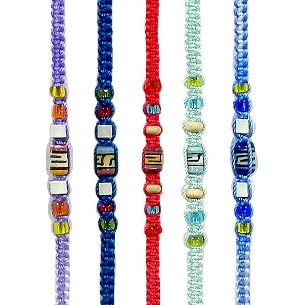 Woven thread braided macrame single strand friendship bracelet with round evil eye bead centerpiece. Bracelet is adjustable with strings to tie into loop. Bracelet is lightweight and water resistant providing a comfortable fit. • Item code: BRB-EE-BR • Sold in assorted colors. • Materials: Evil Eye Bead, Seed Bead, Thread • Handmade in Peru. Contact us or search our catalog to order custom display(s) of this product. Disclaimer: Each one of our products are handmade and unique. When ordering wholesale, customer will receive ASSORTED COLOR, AND/OR PATTERN variations of the product. *Specific colors are available for selected items upon request.