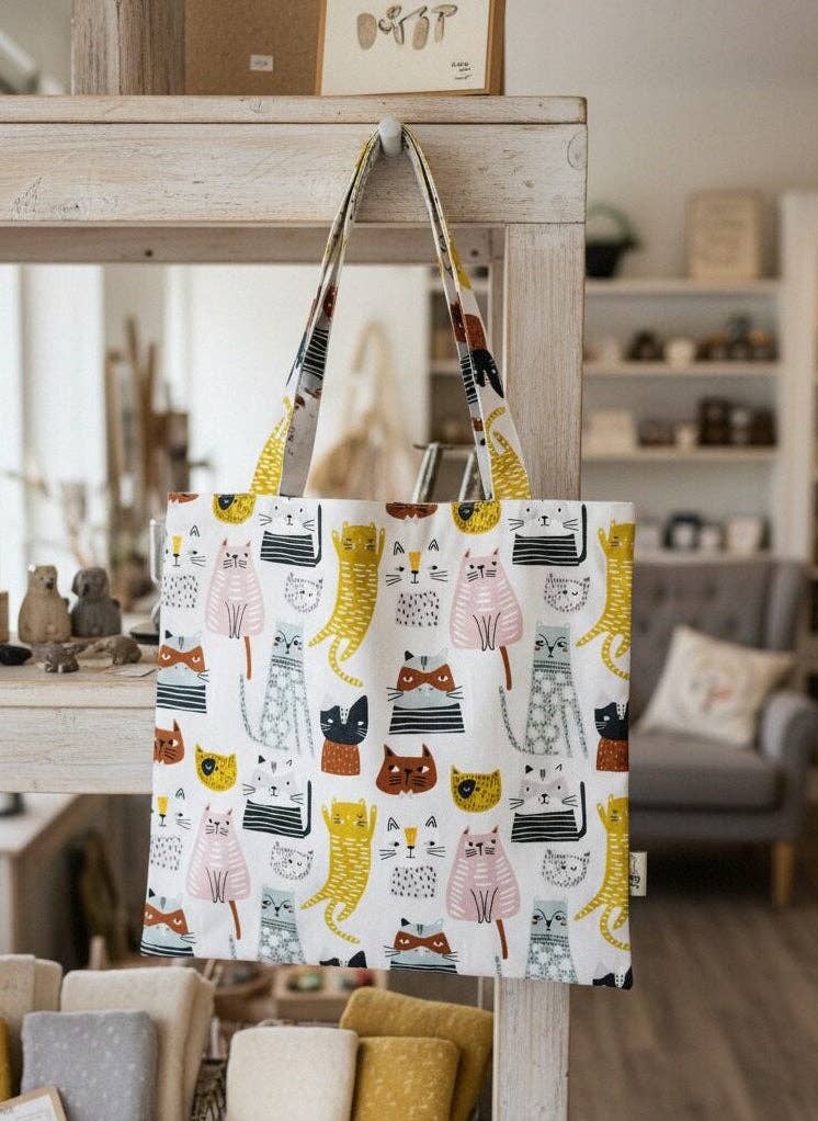 Wholesale Grey & White Cat Tote Bag, 'Dash Fluffy Cat', Cat Tote Bag