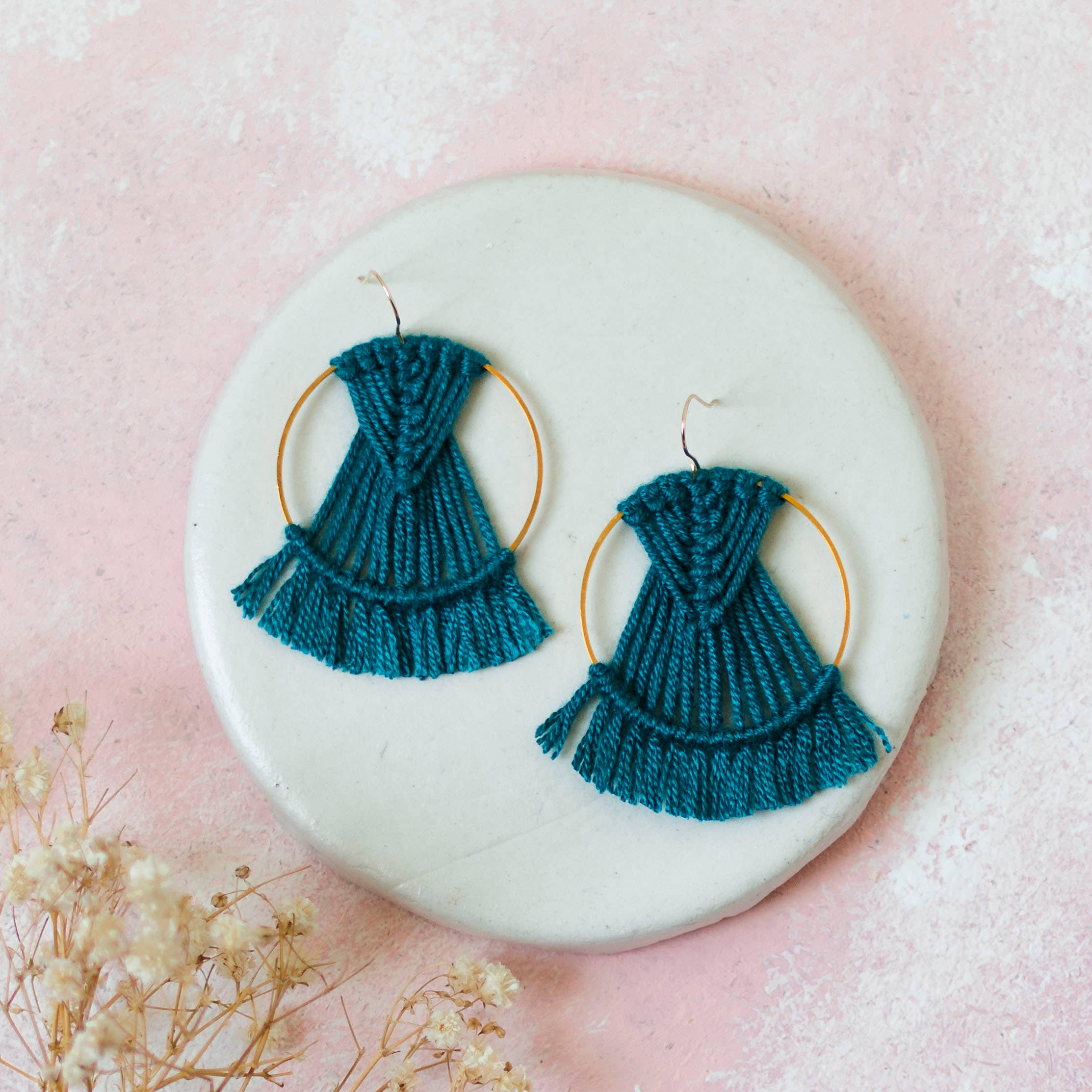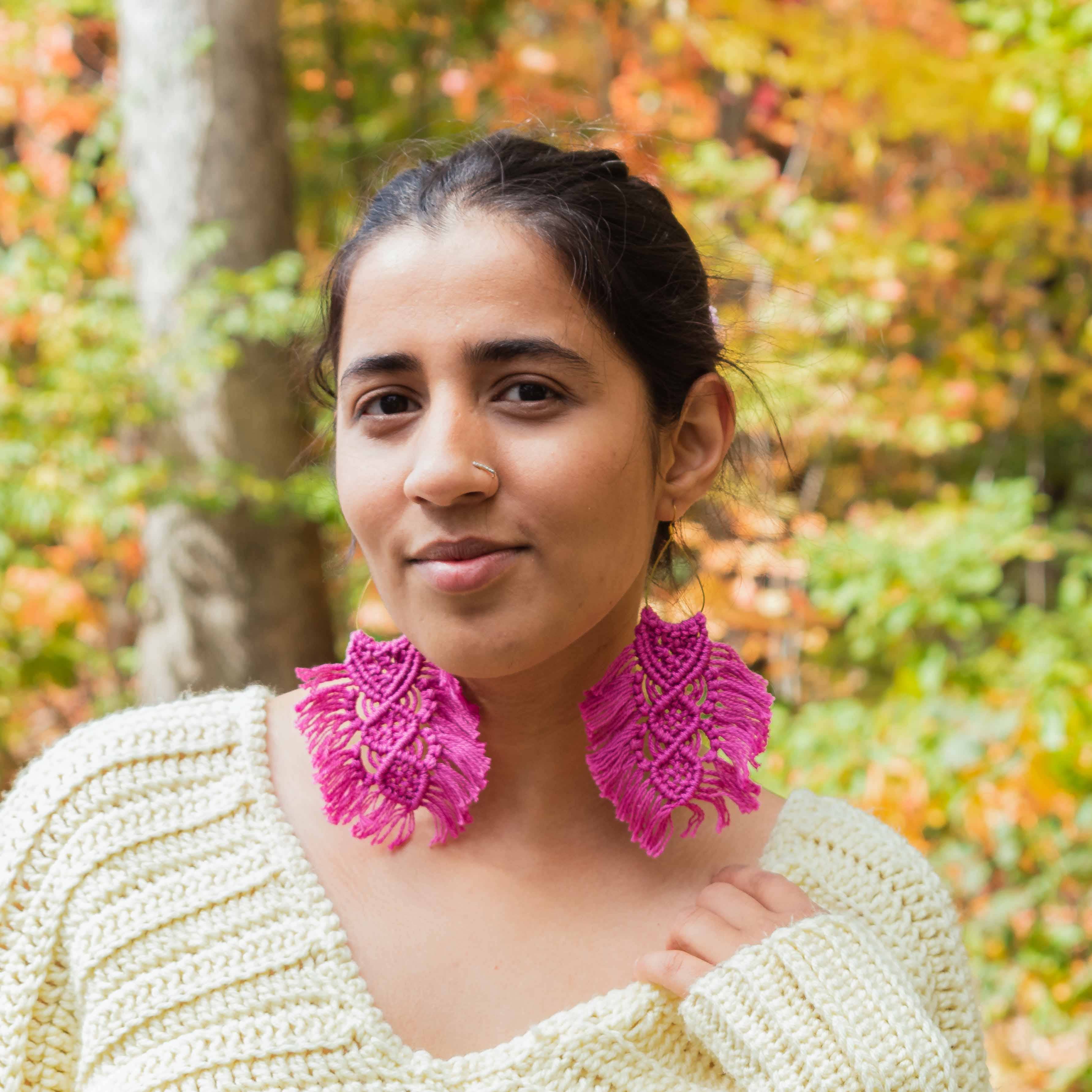 * Crochet Hoop Earrings - Coral