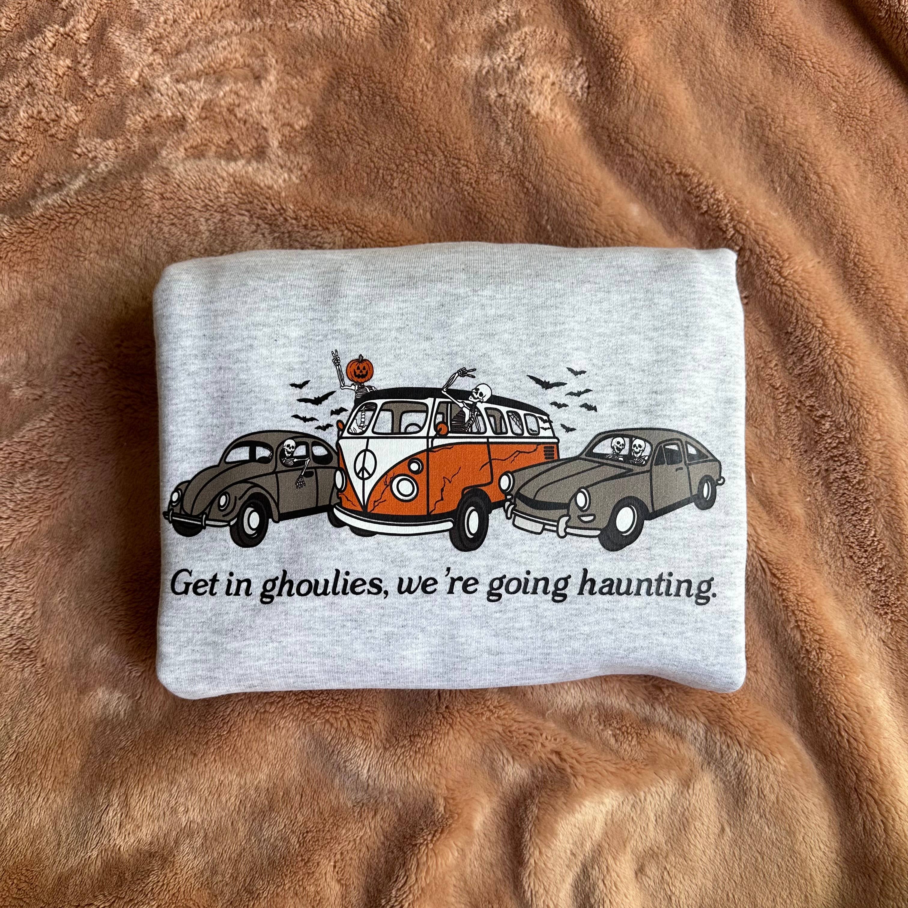 Treat yourself to a frightfully fun Halloween sweatshirt this fall with the Ghost Cats Sweatshirt. This unique sweatshirt features a printed design with black ghost cats. - Eye-catching printed design - Soft, cozy ash grey sweatshirt fabric that's perfect for autumn weather - Perfect for wearing to Halloween parties, pumpkin patches, bonfires, and more Show your Halloween spirit in style with this playfully spooky sweatshirt. The ghost cat graphic is sure to put you in the Halloween mood, while the soft grey fabric keeps you comfy. Pair it with jeans or leggings for an easy Halloween costume or a festive fall outfit. This super-cute graphic sweatshirt is a must-have for any Halloween enthusiast. The ghostly cat design will get you compliments all season long. Grab one before they're all gone!