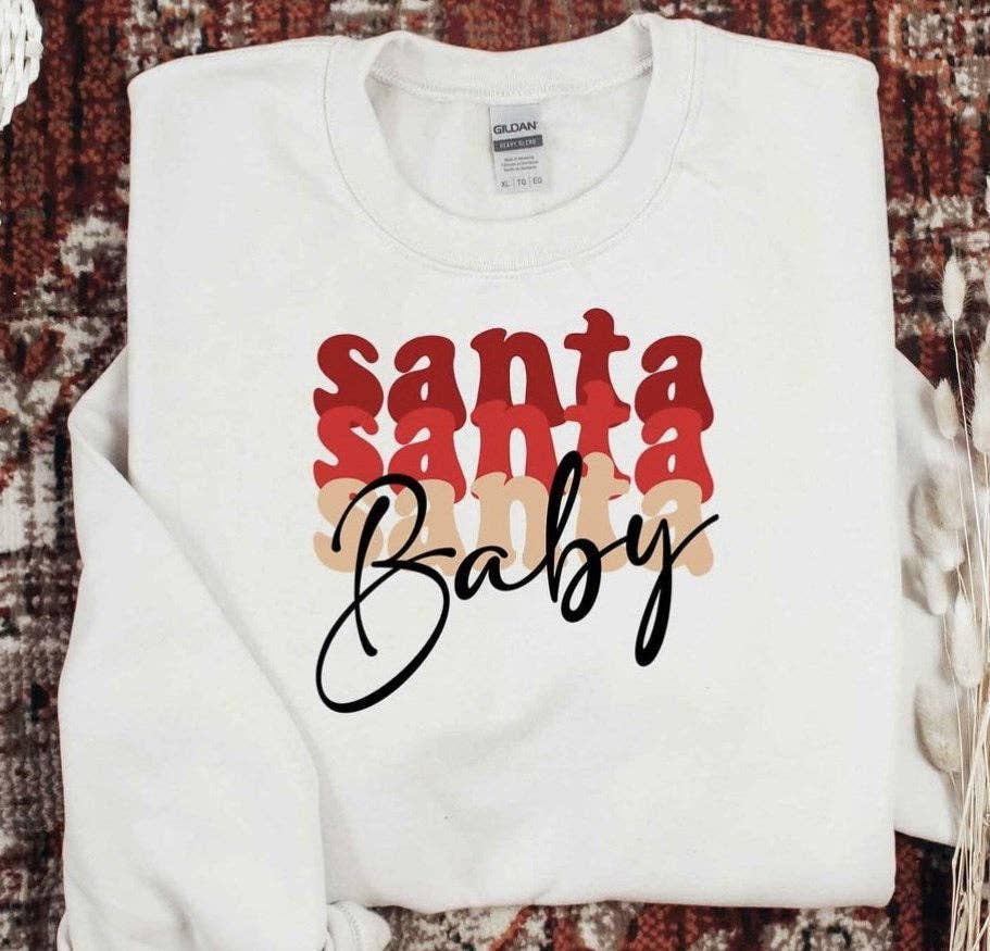 SANTA BABY PUFF GRAPHIC TERRY SWEATSHIRTS - CHRISTMAS, DECEMBER, MERRY Made with a 70/30 cotton poly blend, this elevated crewneck is made for graphic designs. We've refined the casual looking fabrication for a sleek finish. Pair this versatile essential with anything for a polished look! * Non-brushed, French Terry interior for the warmer seasons. * * Care instructions * * - The best way to preserve the design is to wash with a mild detergent in cold water with the garment turned inside out. Size : Small / Medium / Large / X-Large (2-2-2-1)