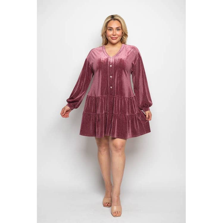 HCD9315-Soft Velvety Button Down Collar Dress