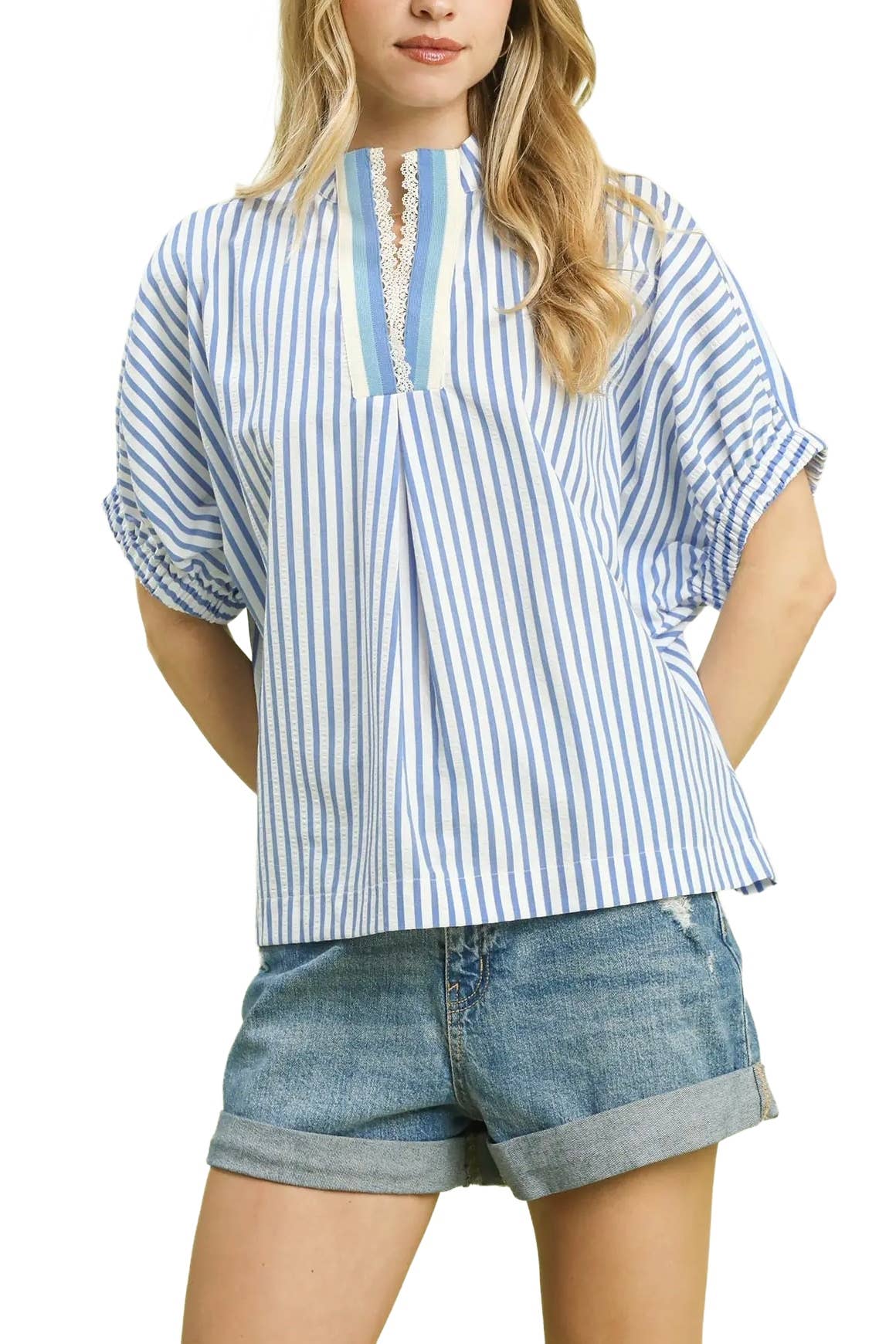 No reviews for Yarn-Dyed Striped Puff Sleeve Split Neck Top yet.