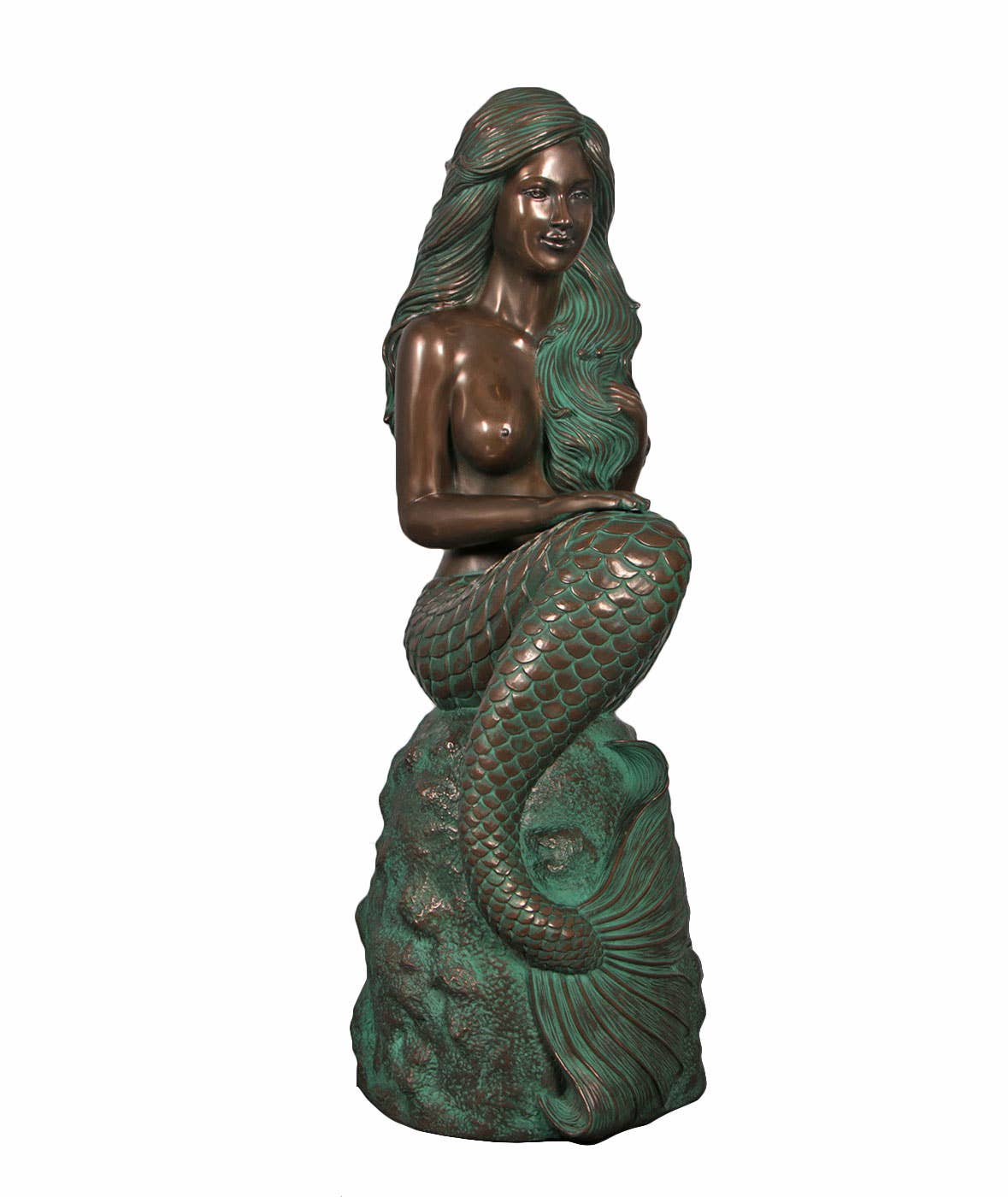 Mermaid on a Rock Verde Bronze Finish 48"H