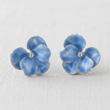 Real Pressed Flowers and Resin on Wood Stud Earrings in Blue