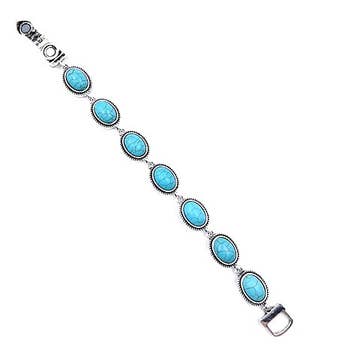 Treat your wrist to some sparkling iridescence in this crystal link bracelet. Featuring ten bezel set crystals in beaded settings, in a variety of spring colors, these bracelets will coordinate with any look. Collect and stack them all! Made in the USA with lead/nickel free antiqued silver plated white metal castings and chain. Lobster claw closure. Available Crystal Colors: iridescent cream, iridescent fuchsia, iridescent pale lavender, iridescent ocean blue, iridescent peach, iridescent sage green Measures Approximately: 1/4" W x 7-8" adjustable Style#s BS03LGDL, BS03LTDL, BS03LVDL, BS03OCDL, BS03PHDL, BS03SSDL