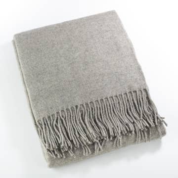 Made from 100% linen on one side and 100% merino wool on the other, these throws are the perfect touch of rustic luxury. Breathable and practical, this throw is delicate to the hand yet durable and warm and the perfect transition from Winter into Spring and Summer into fall. Each throw is woven in Ireland, is 57"W x 78"L with a rolled tassel detail. 100% Linen on One Side, 100% Merino Wool Reverse Charcoal/Linen Reverse Woven in Ireland Dry Clean