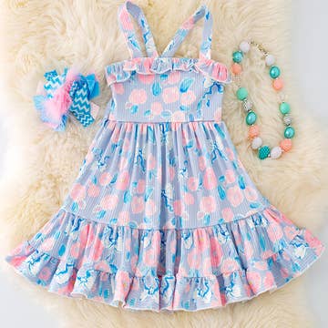 This drop waist dress, adorned with a two flounced hem is ready for carefree adventures and daily fun. Keep your little one feeling oh-so-comfy in this sleeveless, breathable fabric. Twin this piece with coordinating swimwear for day trips to the beach or afternoons by the splash pool. • Sleeveless • Two flounced bottom drop waist • Closure Invisible zipper 12" • Main 100% Poplin cotton, Fully Lined 100% cotton • Above the Knee length • Garment fits true to size • Eco friendly printed • Machine washable • Print-Tropical Paradise on snow white, tropical foliage coral green red blue • Made in U.S.A XS - 3T 36-39” Height / 20.5” Waist / 22” Chest / 21.5” Hips / Length 21.5” S - 4T 39-42” Height / 21” Waist / 23” Chest / 24” Hips / Length 21.5” M - 5/6T 44-47” Height / 22” Waist / 25” Chest / 26” Hips / Length 26.5” L - 7/8T 50-53” Height / 23.5” Waist / 27” Chest / 28” Hips / Length 30.5” XL - 9/10T 53-55” Height / 24.5” Waist / 28.5” Chest / 30” Hips / Length 32.5”