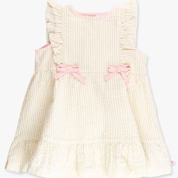 Pink Seersucker Running Bunnies Smocked Bishop Dress