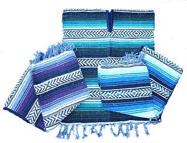 Introducing our Mexican Blanket Poncho, a versatile and stylish accessory for all occasions. This poncho comes in assorted colors, adding a vibrant touch to your outfit. Made from a comfortable acrylic cotton polyester blend, it offers a cozy and soft feel. The poncho is designed to fit all sizes, providing a comfortable and relaxed fit. When unfolded, it measures 76" x 30", offering ample coverage and allowing for easy movement. Legacy SKU: SM611 Parent SKU: PN1001 Embrace the cultural charm and warmth of our Mexican Blanket Poncho. Whether you're heading to a festival, going for a casual outing, or simply lounging at home, this poncho is a perfect choice. Order yours today and experience the comfort and style it brings to your wardrobe.