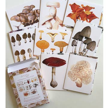 Stat A2 Mushroom, red & gold on cream, 5 card + 5 enve