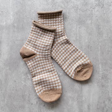 GINGHAM WAFFLE SOCKS - neutral