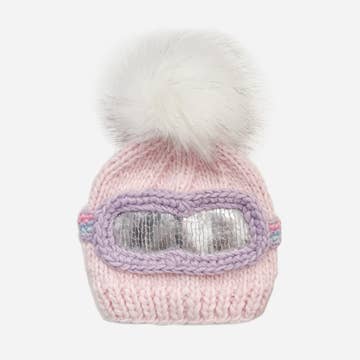 Classic pompom beanie with added earflaps for warmth, candy sprinkles for fun, sweet pink pompom on top and in graceful white, this hat is a winner of hearts. Designed in sizes for toddlers and small children up to age 6. See whole array of mittens and scarves for go-along items. Sizes: S( 1-2Y); M (2-4Y); L(4-6Y) 100 % Acrylic, Fleece lined;