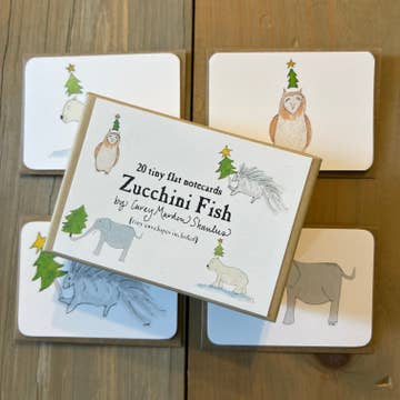 Set of 10 boxed greeting note cards. A1 size (3.5" x 4.875") folded note. Blank inside. Vibrantly printed colors. Flat/digitally printed on thick white card stock paper. Includes matching square flap envelope. Packaged with kraft paper box and info sticker. Made in the USA.