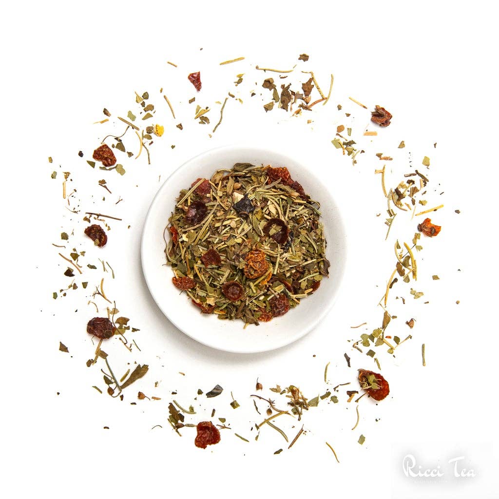 Rooibos, colloquially known as Red Tea, is an herbal plant that grows in South Africa. Rooibos is a flavorful alternative to tea for those seeking to minimize caffeine intake. Our "Rooibos Earl Grey" is a top-grade organic version, flavored with the essence of bergamot. Naturally Caffeine-Free. Ingredients: Rooibos, orange, blue cornflowers, natural bergamot.