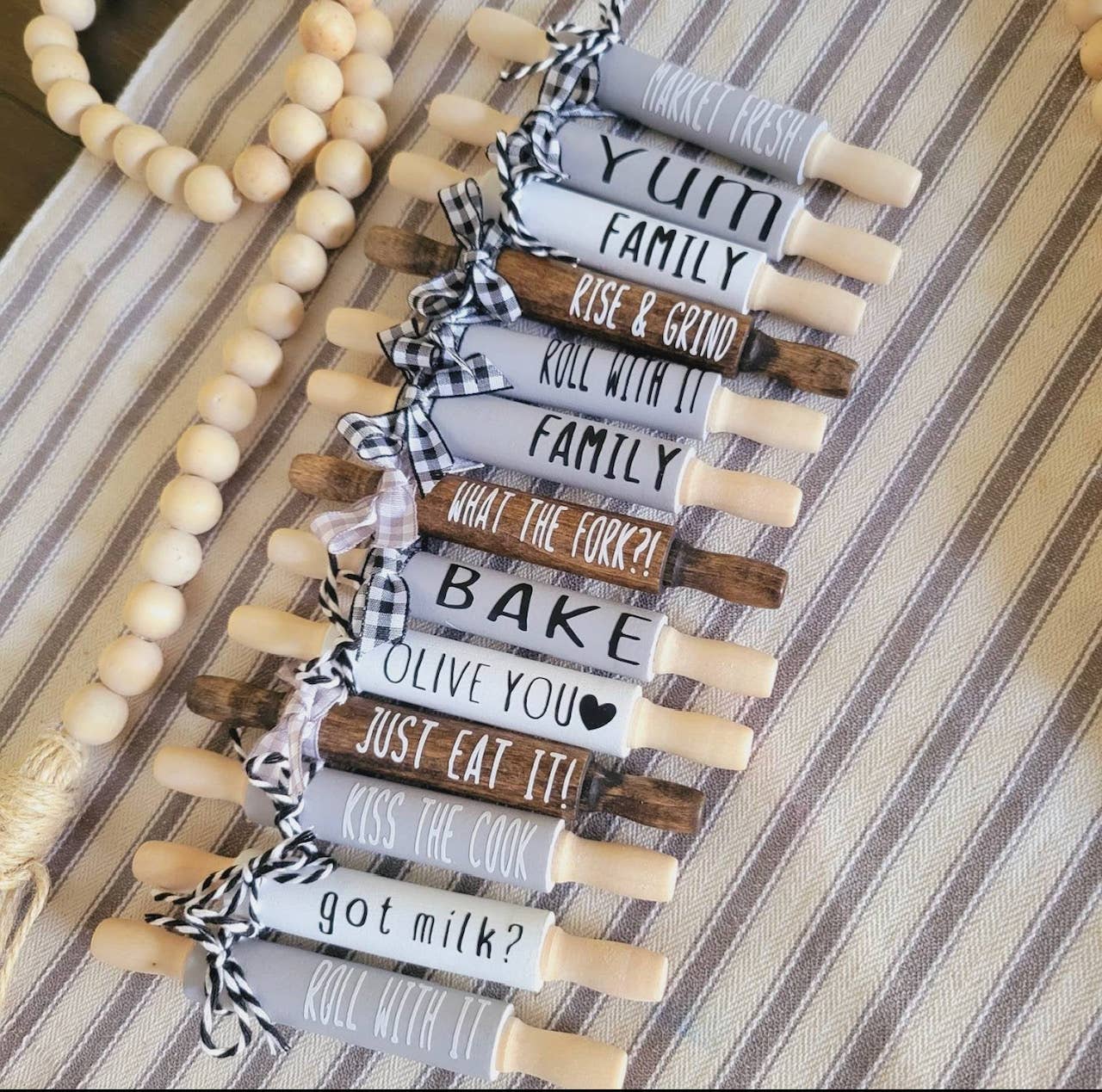 5" Mini Farmhouse Rolling Pins, Farmhouse Tiered Tray Decor