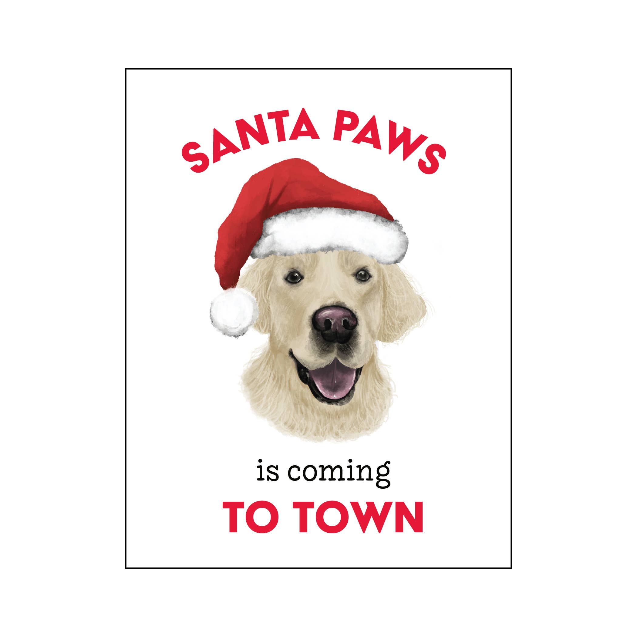 "Santa Paws Is Watching...For Crumbs" hand lettering combined with a watercolor illustrated pug looking up expectantly. A2 card with an original watercolor illustration printed on 130 lb paper. Comes with a red deep-flap paper envelope in a protective cellophane sleeve. Size: A2 (4.25" x 5.5")