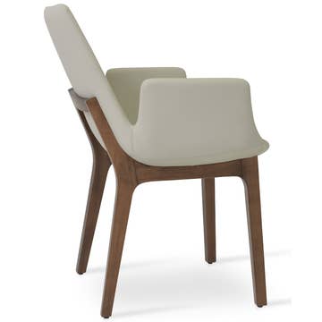 Set of 2 Esmy Beige Fabric Chair with Dark Brown Bentwood Back and Solid Wood Legs Classic wing chair design with a modern twist. This dining chair is upholstered with fabric for the front of the seat and back, and is accented with bentwood seat back. Both seat and back are cushioned with medium density foam for better comfort of even long-time sitting. Legs are made of solid rubberwood, and are stained dark brown. Assembly needed. Spot clean recommended. Product Dimensions: Overall: 21.26"W x 22.05"D x 33.86"H Weight: 20.24 LBS Other Dimensions: Seat: 20.28"W x 17.91"D x 19.09"H; Seat cushion: 4.92" thick; Back: 18.5"W x 3.54"D x 14.57"H; Back cushion: 1.38" thick; Leg height: 14.17".