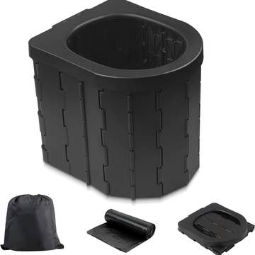 Measures: 17"" W x 16"" D x 14"" H Lightweight and easy to carry Features integrated toilet paper holder Use with 8-gallon toilet waste bags for easy cleanup and no mess Removable cover seals in odor