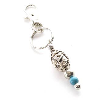 One of our 100% genuine American pewter charms hung from a steel standard size key ring.
