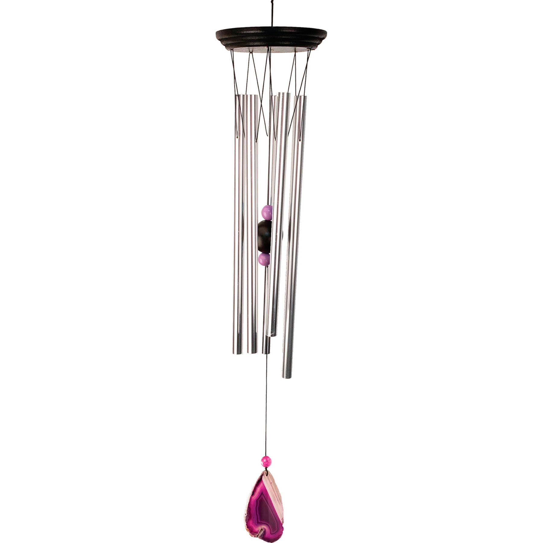 Each of the natural agate stone chimes by Sunset Vista designs produce a soothing magical melodic tone that brings harmony and balance to your life. Through the powers of Feng Shui, each chime encourages your emotional, physical and intellectual state and promotes stability and strength. The Blue Agate can promote encouragement and support and can bring calmness and peace of mind. Each stone is sliced thin to reveal its translucent beauty and each piece of agate is unique – no two are alike. May the music of the chimes, combined with this ancient earth energy, bring harmony and balance to your life. Handcrafted / anodized aluminum. Features Natural Agate Stone Includes easy hanging hook. Perfect gift for the Feng Shui enthusiast! Measure approximately: 5" x 5" x 33"