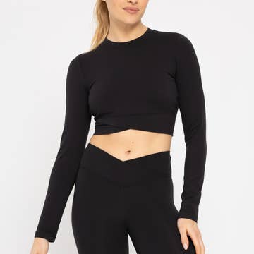 Introducing a sleek and stylish sports top featuring a crisp lapel collar, a unique front twist detail that adds a touch of flair, a cropped silhouette for a trendy and flattering fit, built-in chest pads for added support and comfort, and long sleeves for versatility in various workout routines. Perfect for both gym sessions and casual wear, this top combines fashion with function. Pattern Type: Plain Sleeve Length: Long Sleeve Length: Regular Fabric: Non-Stretch Material: Woven Fabric Composition: 75% Polyamide,25% Elastane Care Instructions: Machine Wash, Do Not Dry Clean