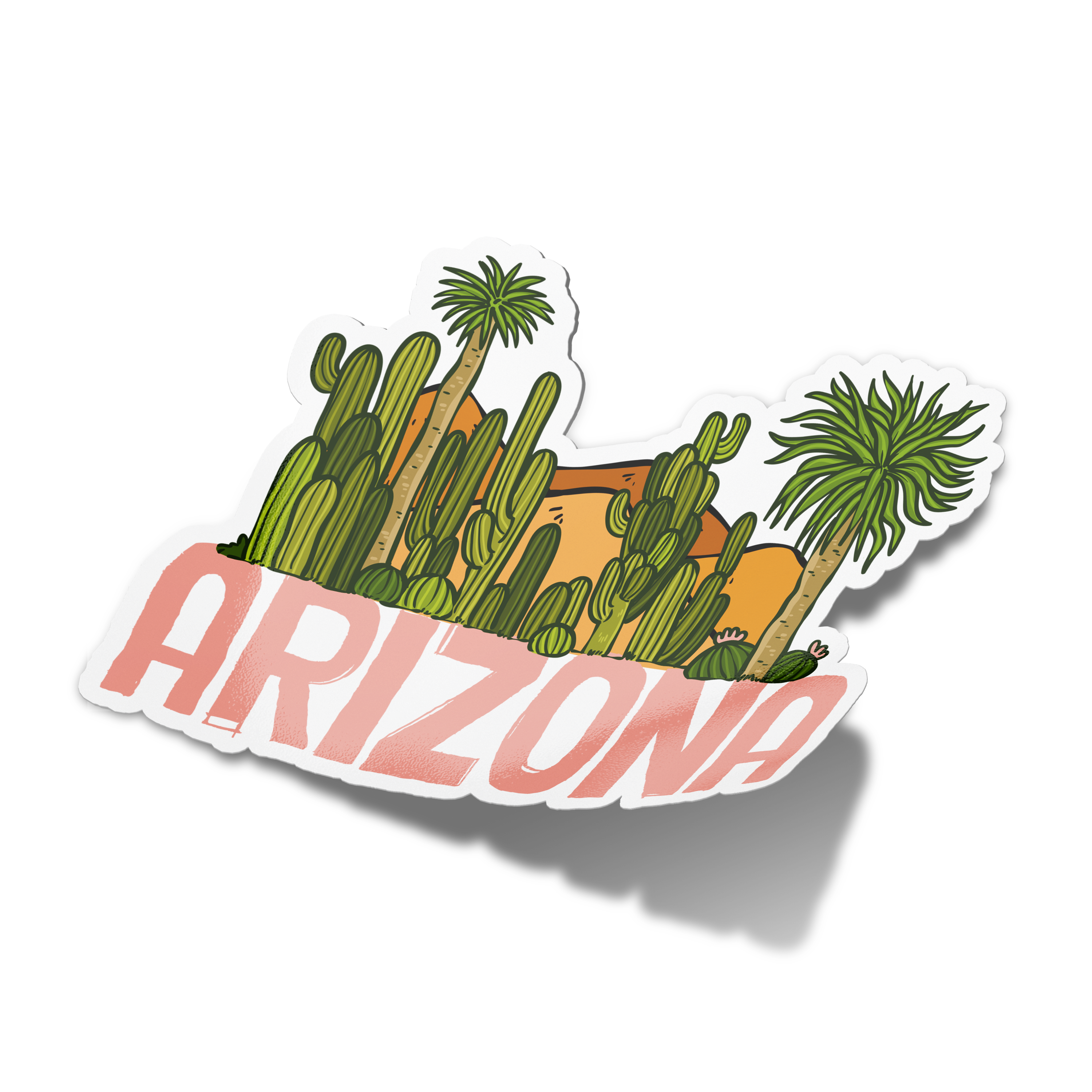 'Arizona Sunrise' vinyl sticker by Turtle's Soup. 🐢 Most stickers are approximately 3 inches by 3 inches. 🐢 Our Turtley Awesome vinyl stickers are made from the highest quality ingredients on the market! Printed on thick, ultra durable vinyl, these stickers are made to last. They're UV-coated making them waterproof, weatherproof, and dishwasher safe! 🐢 Save the planet, pass on packaging. All of our stickers are packed loose, meaning no plastic, no paper, just product! Should you require packaging, we can offer it upon request with an added environmental surcharge. 🐢 We offer retail displays in a variety of sizes. Ask about our 12 or 24 pocket countertop displays. Have a slat wall? We also offer a 30 pocket wall unit. 🐢 We always include hand picked samples to fit your boutique with every order. Interested in trying out a specific SKU in your shop? Let us know and we'd be happy to include some freebies. 🐢 Copyright © 2020 Turtle's Soup. All Rights Reserved.