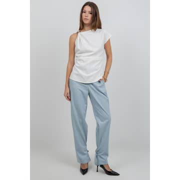 Modern elegance in motion. The Jade Asymmetrical Top turns heads with its sleek draped neckline and contemporary cut. Made for mid-size women, this asymmetrical top in airy poplin offers both style and breathability. It's unique cowl neck top silhouette transitions from desk to dinner effortlessly, making it a stylish work top that brings a modern edge to classic tailoring. Unique asymmetrical top with draped cowl neck design Lightweight poplin for breathable, all-day wear Flattering fit tailored for mid-size women Perfect stylish worktop for day-to-night transitions Machine-washable for easy care
