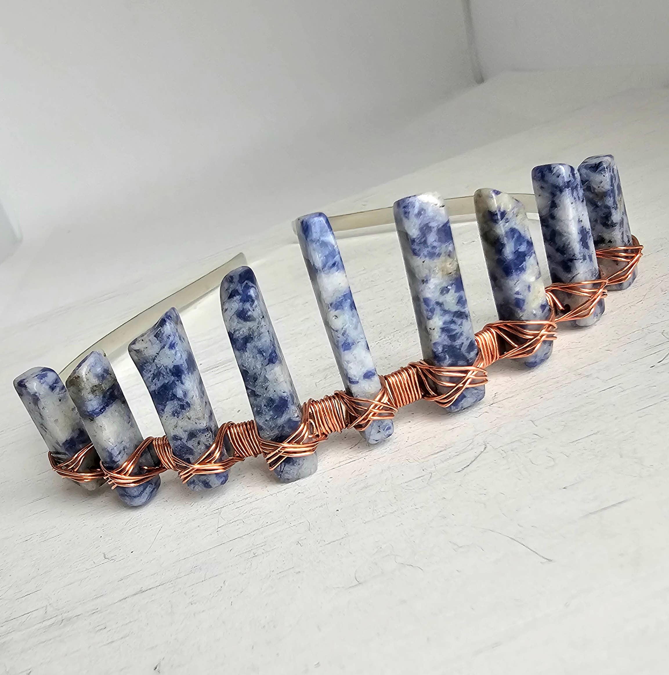 Pretty and unusual, these suncatchers or ceiling fan pulls are made with polished tumbled stones, recycled/reclaimed pieces of vintage or thrifted jewelry, glass and crystal beads and wrapped with craft wire. They are finished with a 6" bronze or copper chain and lobster claw clasp for easy adjustability or attachment to your rearview mirror and other hanging points. Lengths measure between 6-8" long not including the chain. Order minimum of 4 pieces.