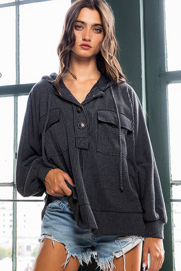 TL1888 SOLID RIBBED HOODIE