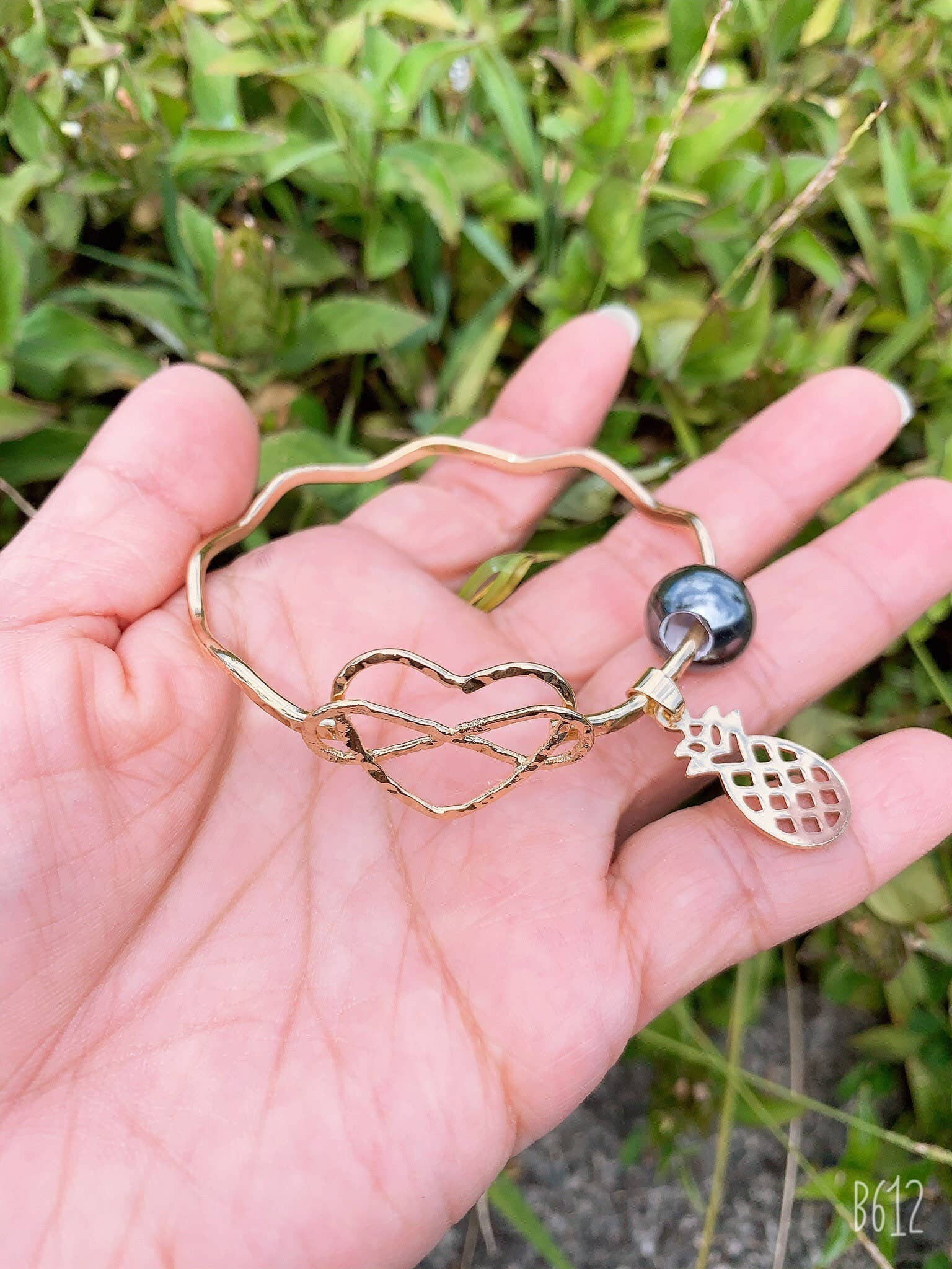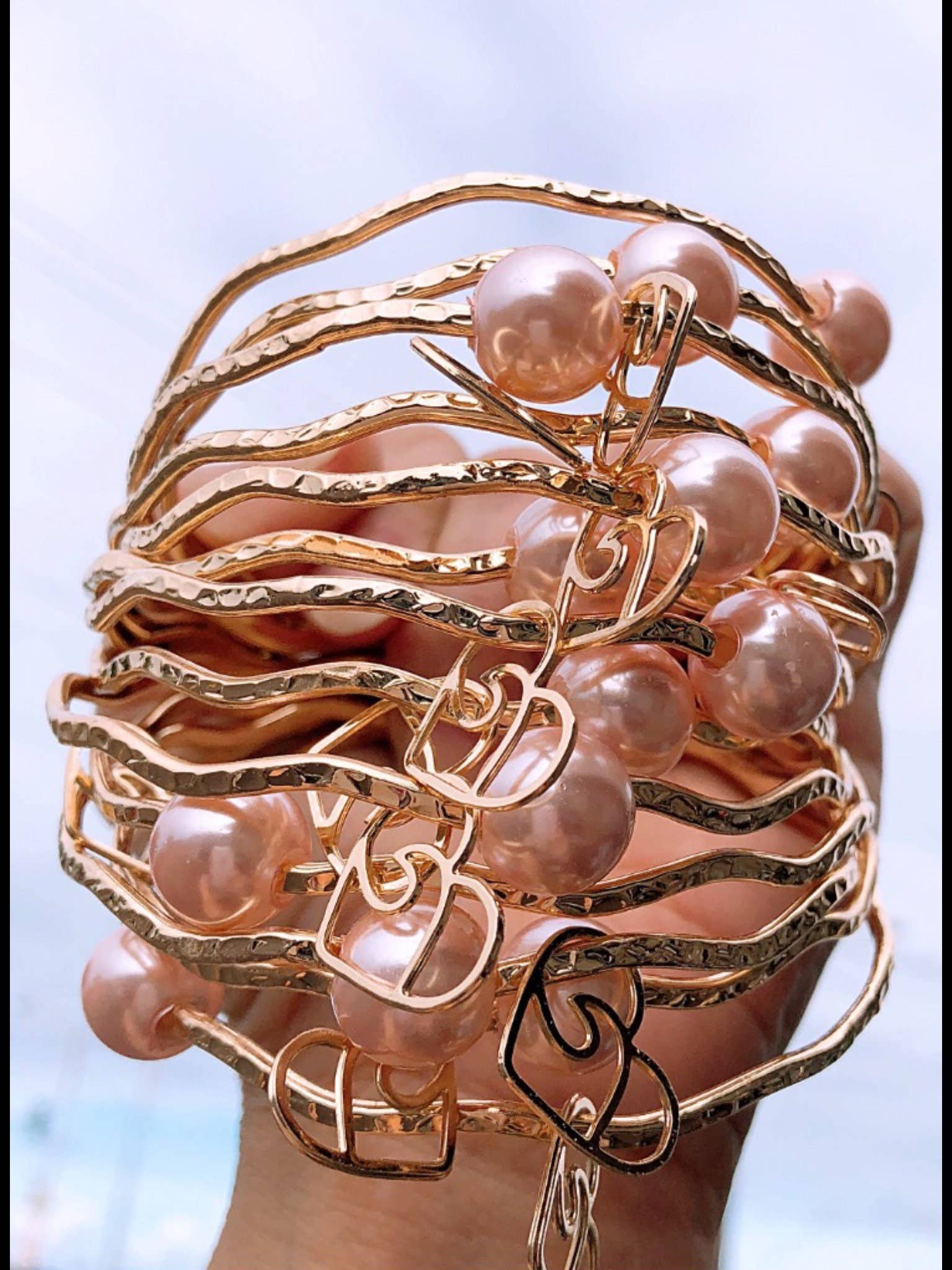 Gray Black Shell Pearl Hamilton Gold Bracelet Our Bracelets feature Hamilton Gold. This is a metal that will not tarnish easily. Living on Hawaii have given us the inspiration for our beautiful jewelry design. Each piece of our jewelry is beautiful made to reveal the unique style of the Hawaiian Islands. They are also the perfect little gift for your ohana (family), friends or your special someone. someone. someone. The bracelet features a Heart Wave charm and a floating pearl. We also do Wholesale, please contact us if you are interested in purchasing our products. For your convenience: 57mm = Size 7 60mm = Size 7.5 65mm = Size 8 70mm = Size 8.5 72mm = Size 9 75mm = Size 9.5 80mm = Size 10