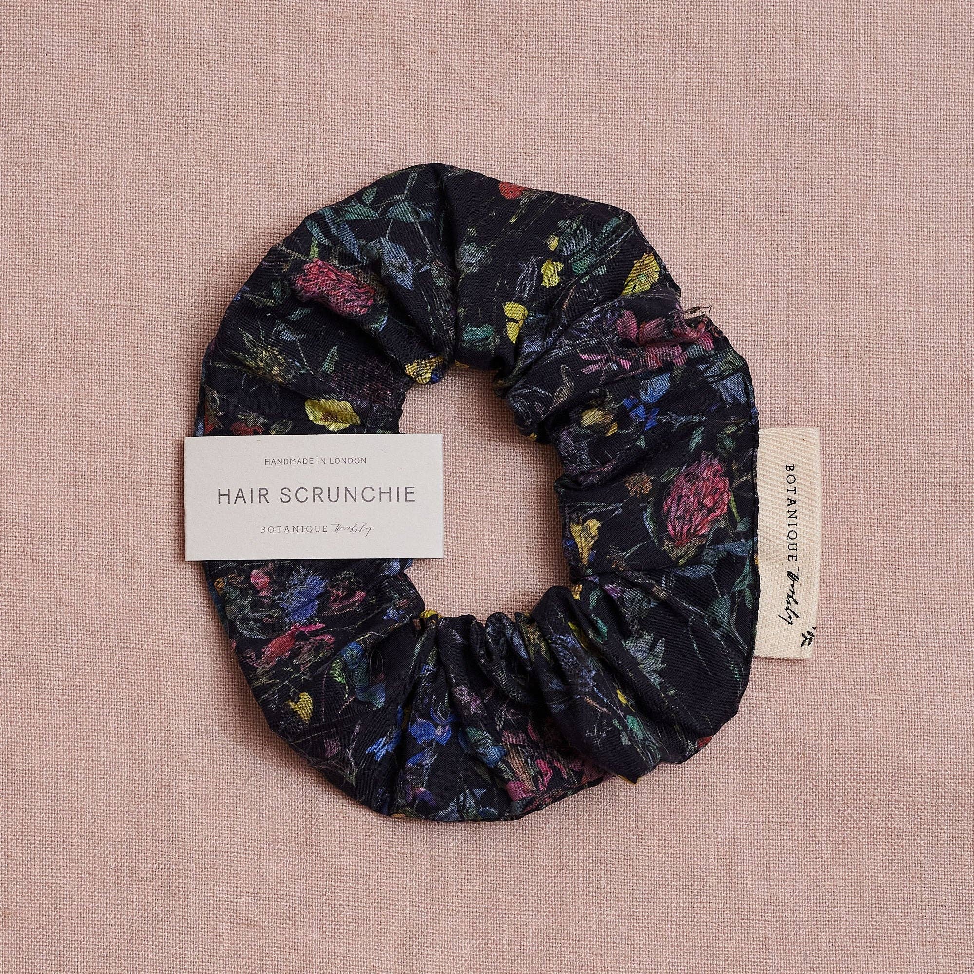 Linen scrunchies handmade in London. Made using gorgeous Merchant and Mills linen, these scrunchies are both super soft and stylish! * Brand: Botanique Workshop * Materials: 100% yarn dyed linen, elastic * Available in 4 prints * Also available in a selection of Liberty Print Tana Lawn fabrics or as a matching set with our wire hair band. RRP : £16.95