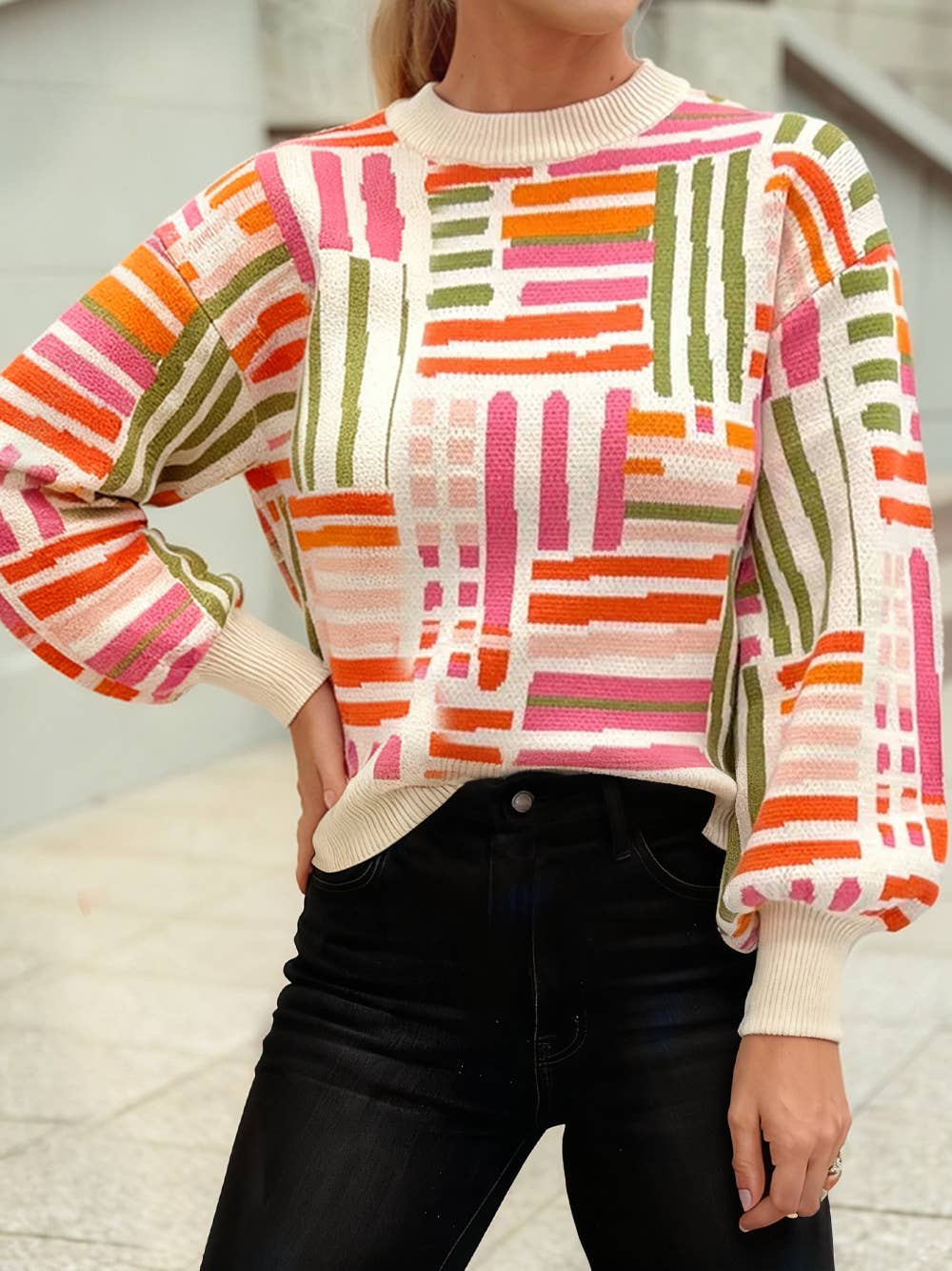 CONTRAST LACE SLV JACQUARD SWEATER FW10014