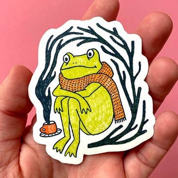 This tea-loving froggy sticker is 2.25 x 1.75" with a matte holographic finish. The packaging measures 3x3in. My vinyl stickers are weather-resistant and should last at least 2-4 years. They are printed on PVC-free material keeping them environmentally friendly!